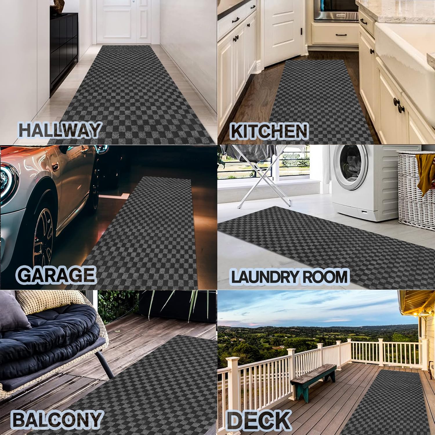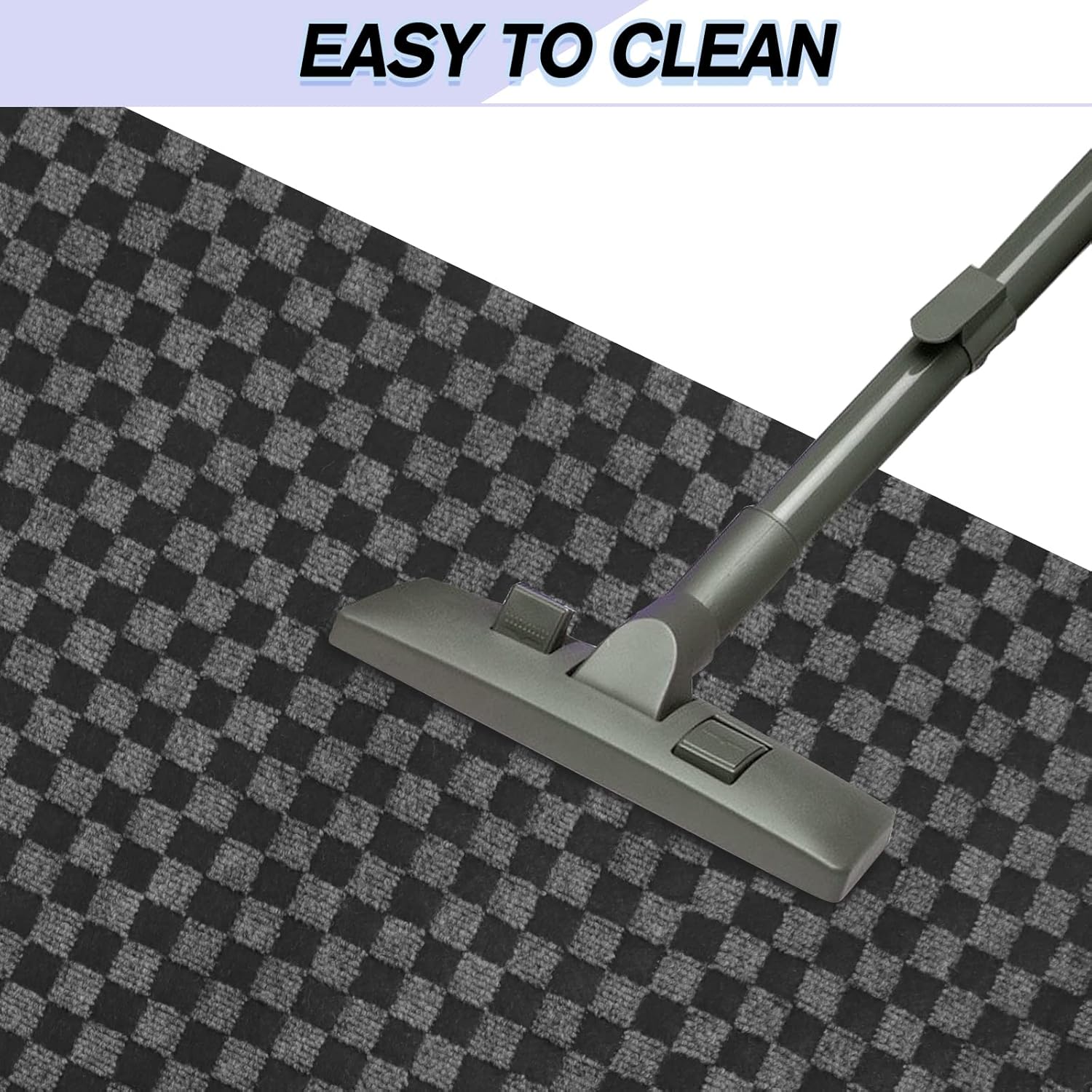 Custom Size Backed Non-Slip Area Rugs Runner, Easy Clean, Waterproof Runner Rugs for Hallway Entryway, Kitchen, Laundry, 2FT x 2FT, Gray Checkered