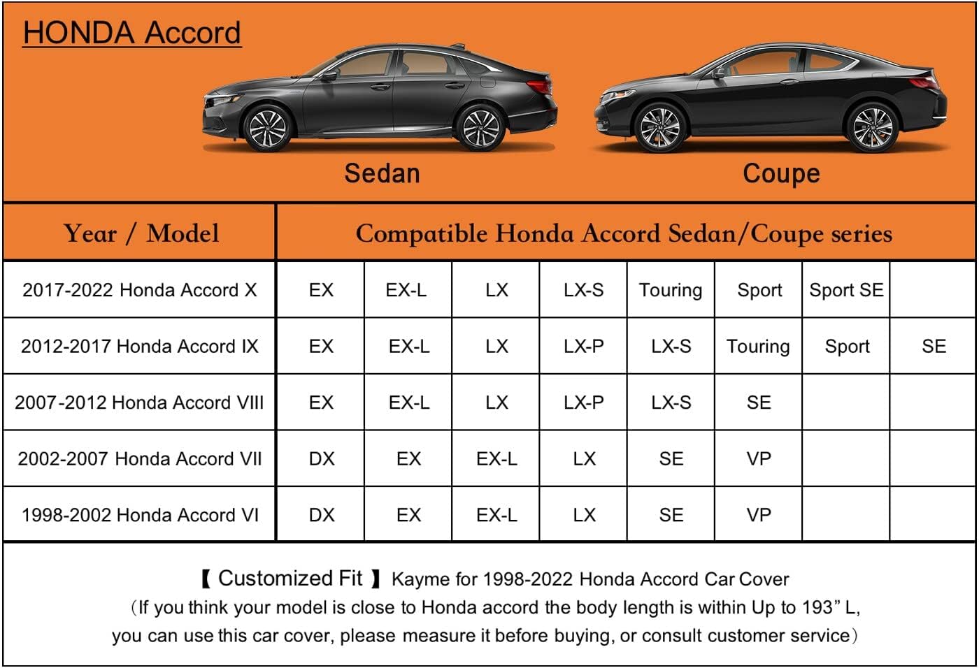 - 【Suitable for】-Customer fit for Honda Accord sedan/coupe(2001-2025). Come with a large enough portable bag to store your cover when you do not use.