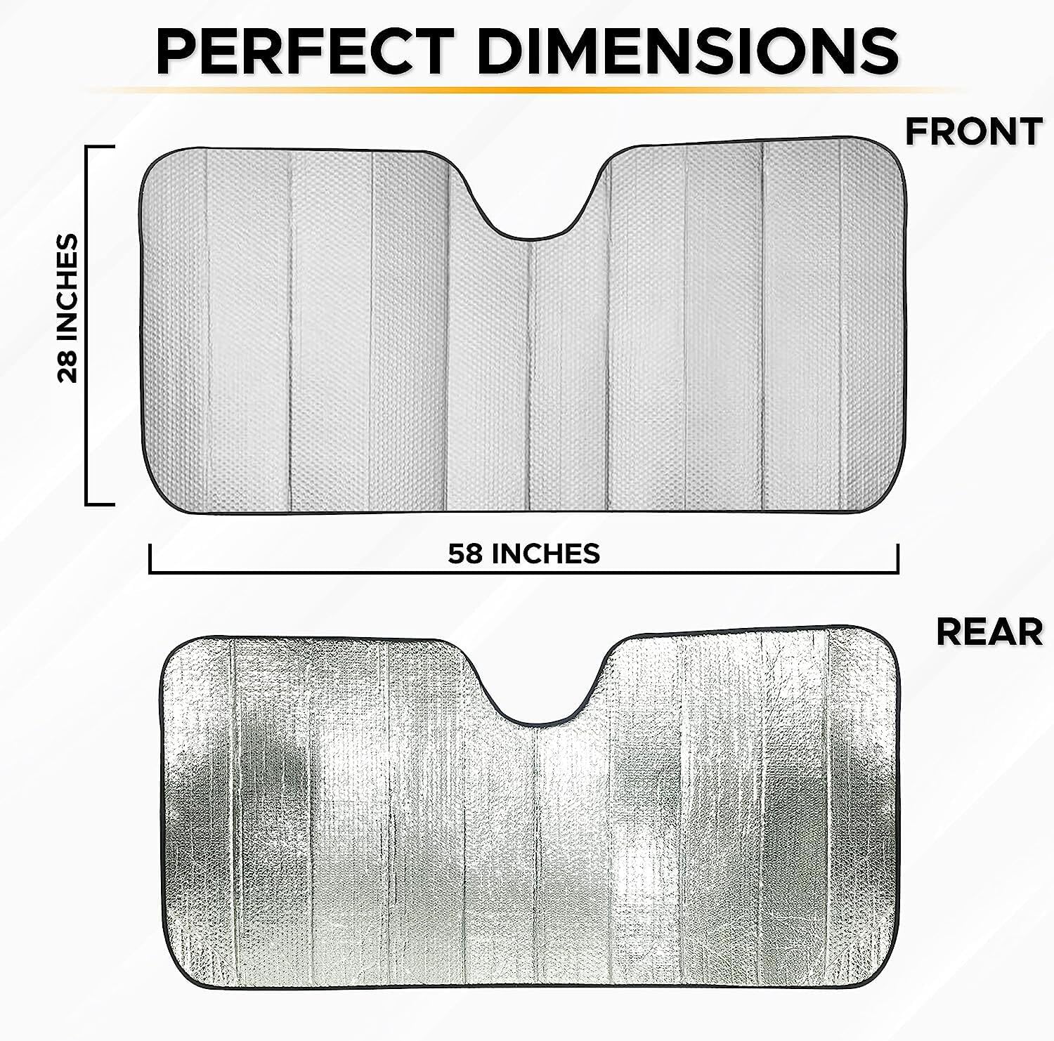 - Compact, Space-Saving Design: Measuring 58 x 28 inches, this sunshade is perfect for hatchbacks, coupes, roadsters, wagons, crossovers, and mid-size SUVs. Its accordion-style design with a built-in buckle strap makes it easy to fold, store, and carry—ideal for minimal space usage.