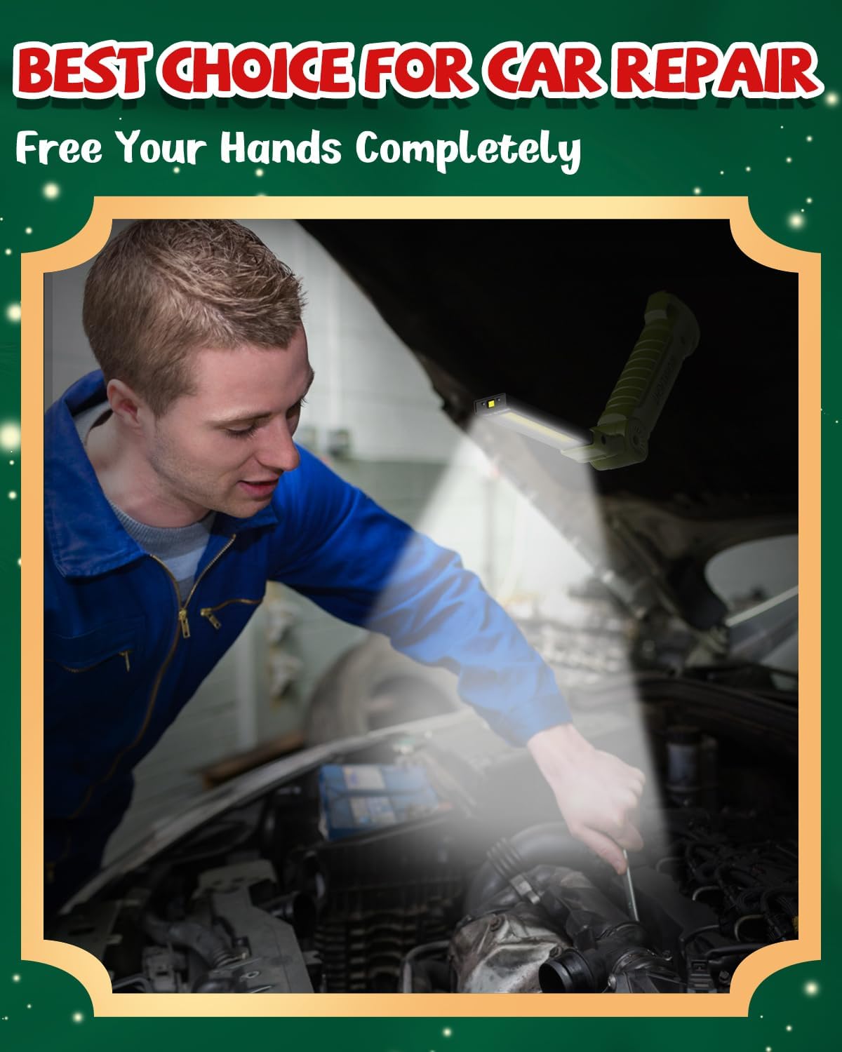 - Sturdy Material and Portable: This led work light is made of hard rubber, anti-sweat and anti-slip, the head is aluminum which dissipates the heat effectively, prolong the life of the lamp. Thanks to the foldable design, the lamp is easy to carry, and save storage space