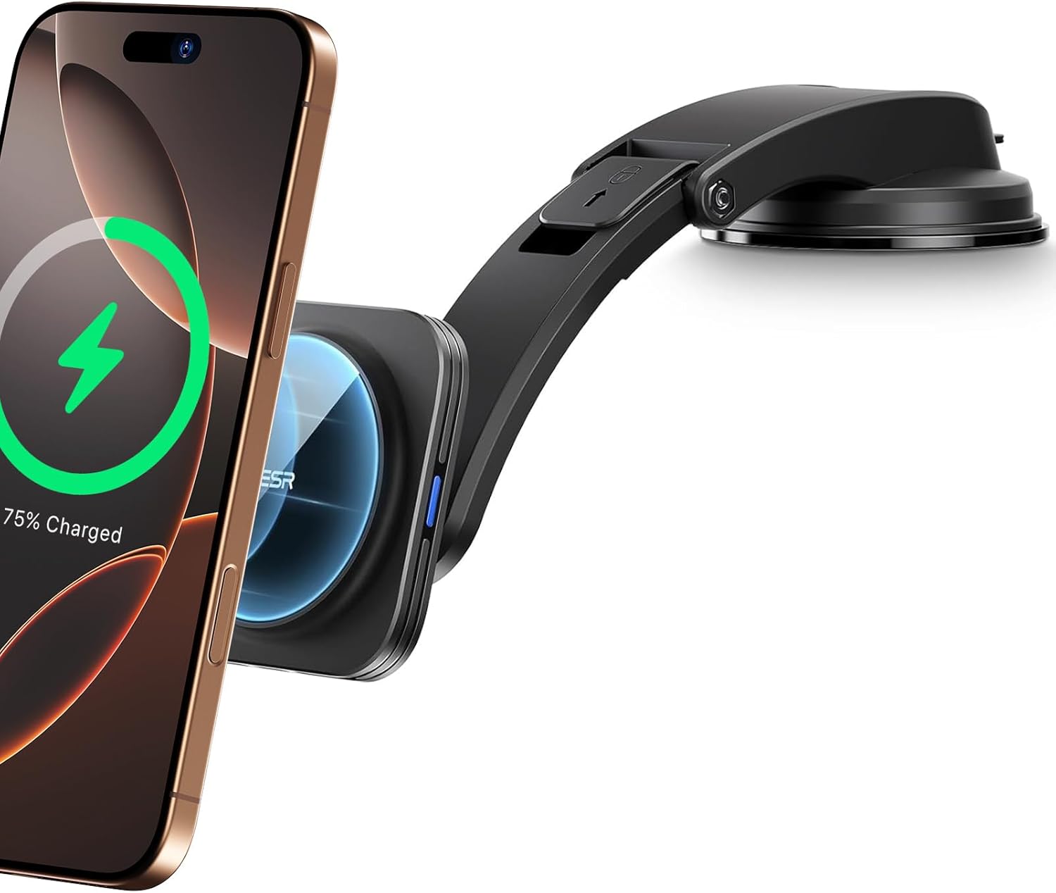 ESR for MagSafe Car Mount Charger, Dashboard Magnetic Wireless Car Charger Mount, Compatible with MagSafe Car Charger, for iPhone 16/15/14/13/12, Galaxy S25, Fast Charging, Car Accessories, Black