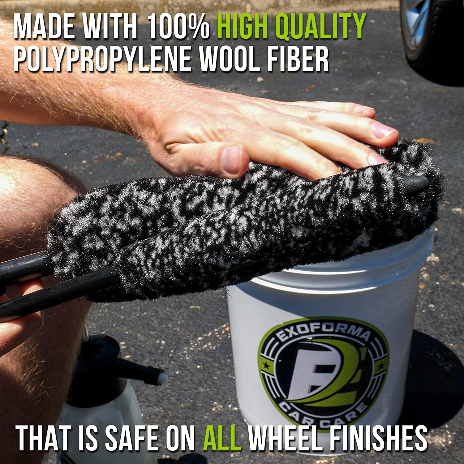 - TOUGH ON GRIME, SAFE ON WHEELS: Don’t risk scratching your wheels just to get them squeaky clean! These bendable brushes are safe for all wheel types. Both are engineered from polypropylene, chemically-resistant thick wool carpet fiber, and the large brush features a smooth rubber tip that removes dirt and grime easily but keeps your wheels’ finish safe and scratch-free.