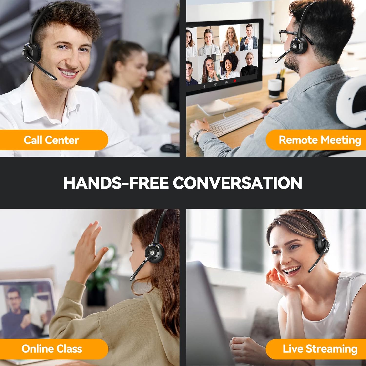 - Universal Compatibility: The wireless headphones with mic work for iPhones, smartphones, desktops, laptops, tablets, etc. (Note: The wireless headset with mic for work's mute function only works with mobile phones currently)