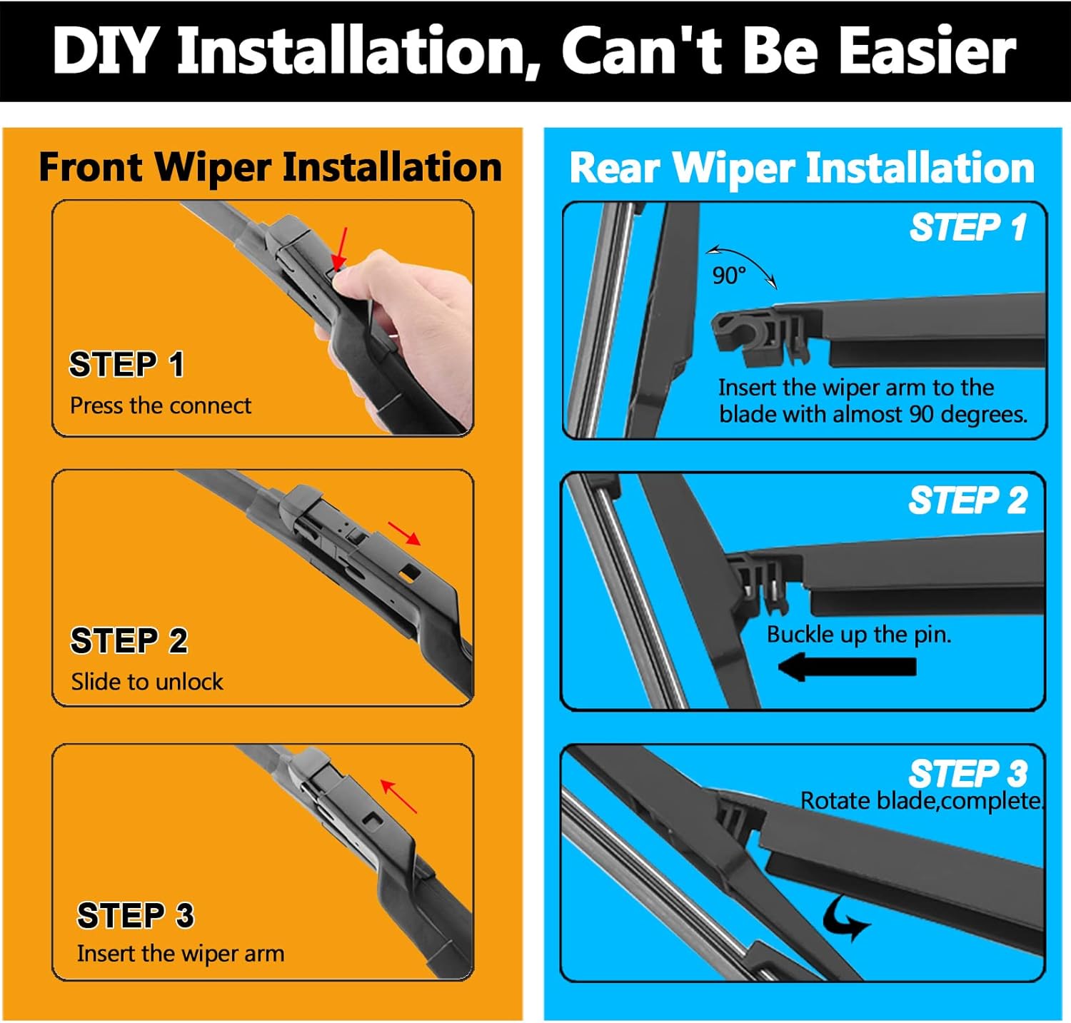 - EASY-TO-INSTALL:Quick and easy to install. fit perfect to your car, like the original parts. Itโs installed to the wiper arm by top lock