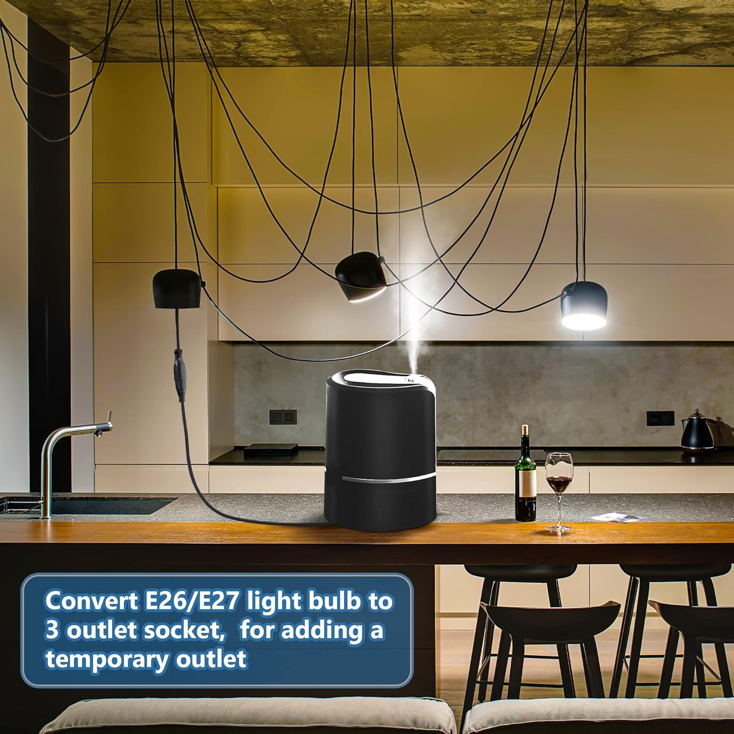 - [Patent Registered]E26/E27 Light Socket Adapter: convert E26/E27 light bulb to 3 outlet socket adapter, good for adding a temporary outlet at a light socket in garage, basement, workshop, utility room, and more