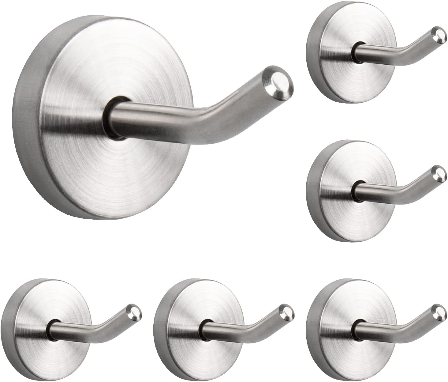 NearMoon Coat Hooks, Wall Hooks for Hanging Hat Hurse Robe, 304 Stainless Steel Heavy Duty Towel Hangers for Bathroom Livingroom Hotel Kitchen Garage, 6 Pack (2 Inch, Brushed Nickel)
