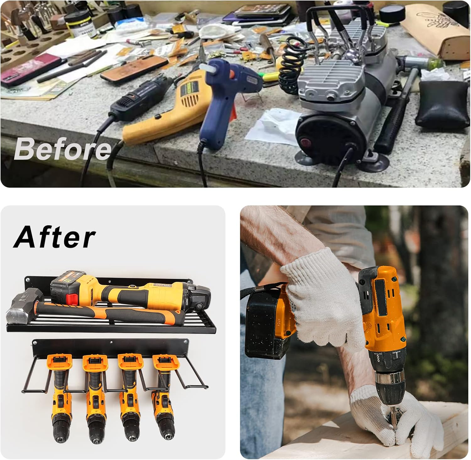 Power Tool Organizer with Charging Station,Drill Holder Wall Mount,Garage Storage Shelves for Organization and Storage,Heavy Duty Pegboard Wall Organizer Set Solid Metal Black