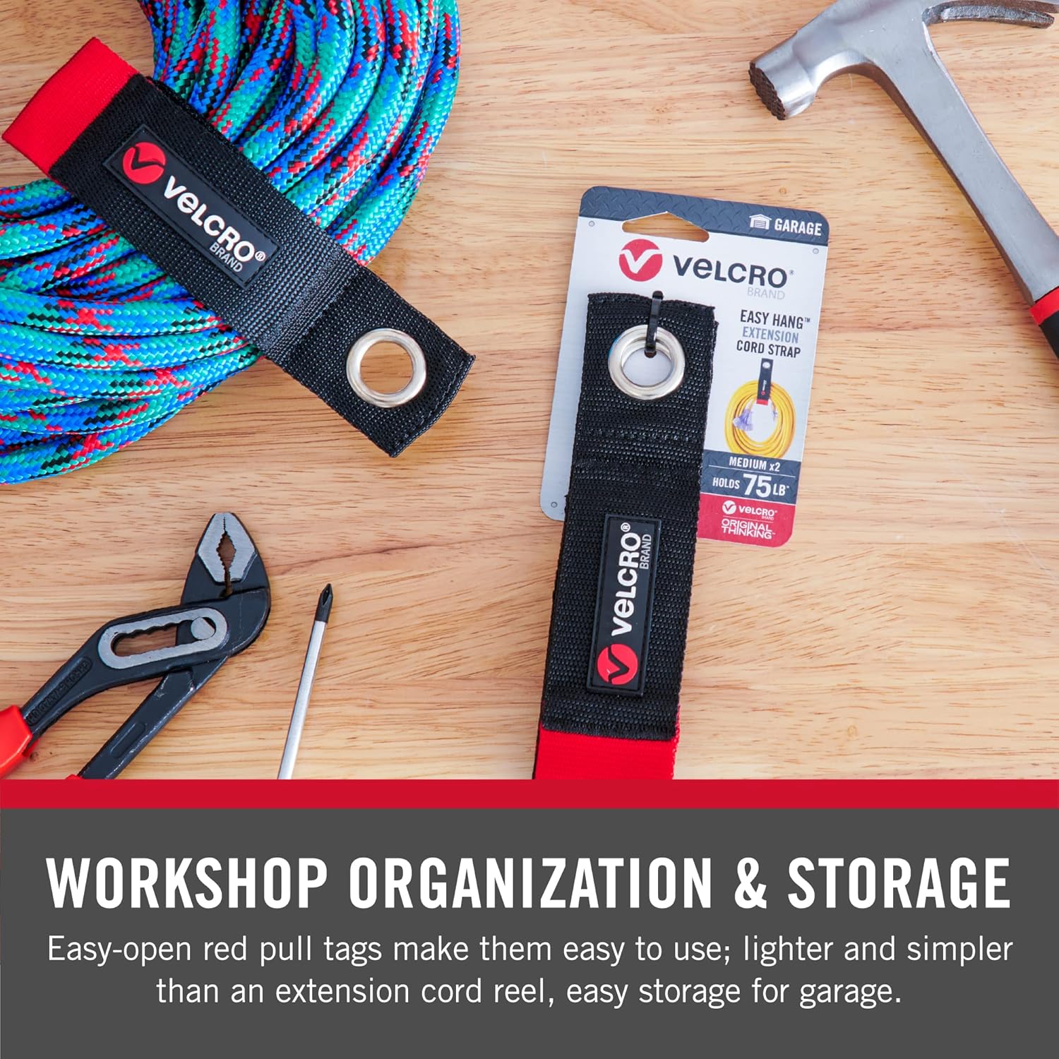 - EXTENSION CORD HOLDER ORGANIZER: Designed specifically for large extension cords, these heavy duty straps are the perfect garage wall organizer for extension cord storage, hanging tools by handles and more