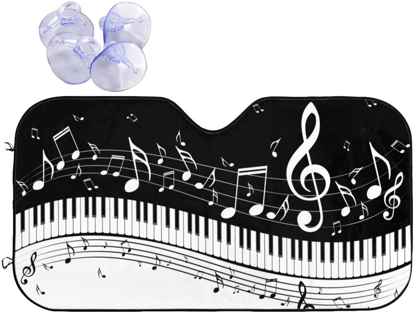 Black White Music Car Windshield Sunshade Front Window Sun Visor Protector Foldable Shield Cover for Truck SUV
