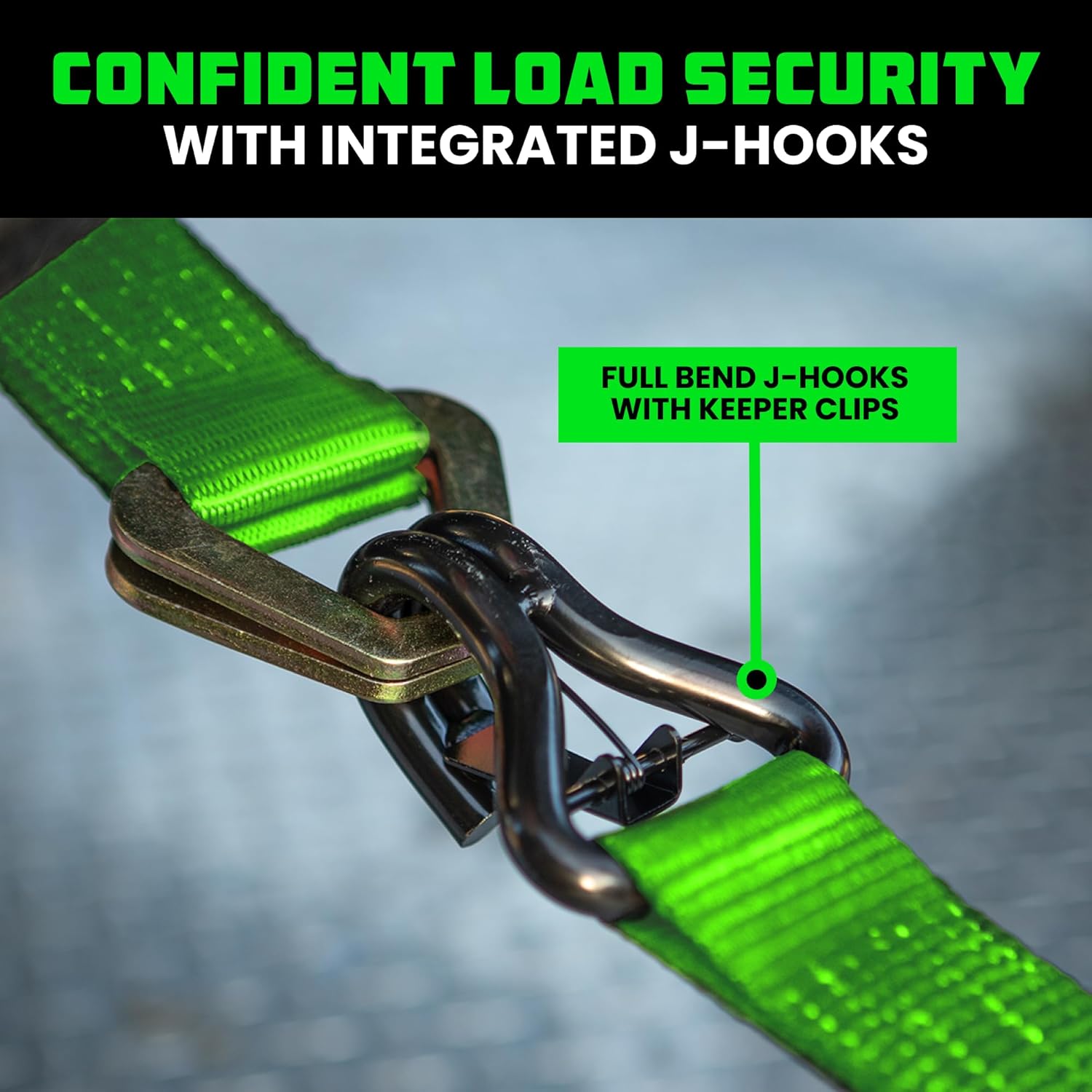 Rhino USA Car Tie Down Straps for Trailers with J Hooks (4-Pack) – 2" x8' (10,000lb Break Strength) – Heavy Duty Car Hauler Tire Straps with Axle Straps for UTV, Powersports & More – Green