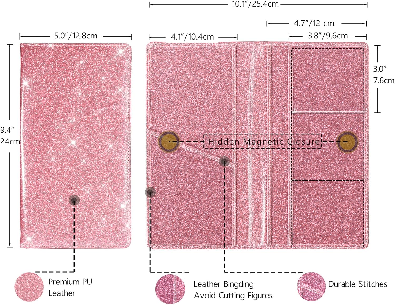 TOURSUIT Car Registration and Insurance Card Holder, Vehicle License Document Glove Box Compartment Organizer, Interior Car Accessories for Women Men Teens (Glitter Pink)