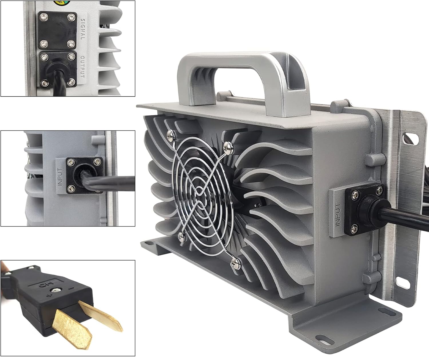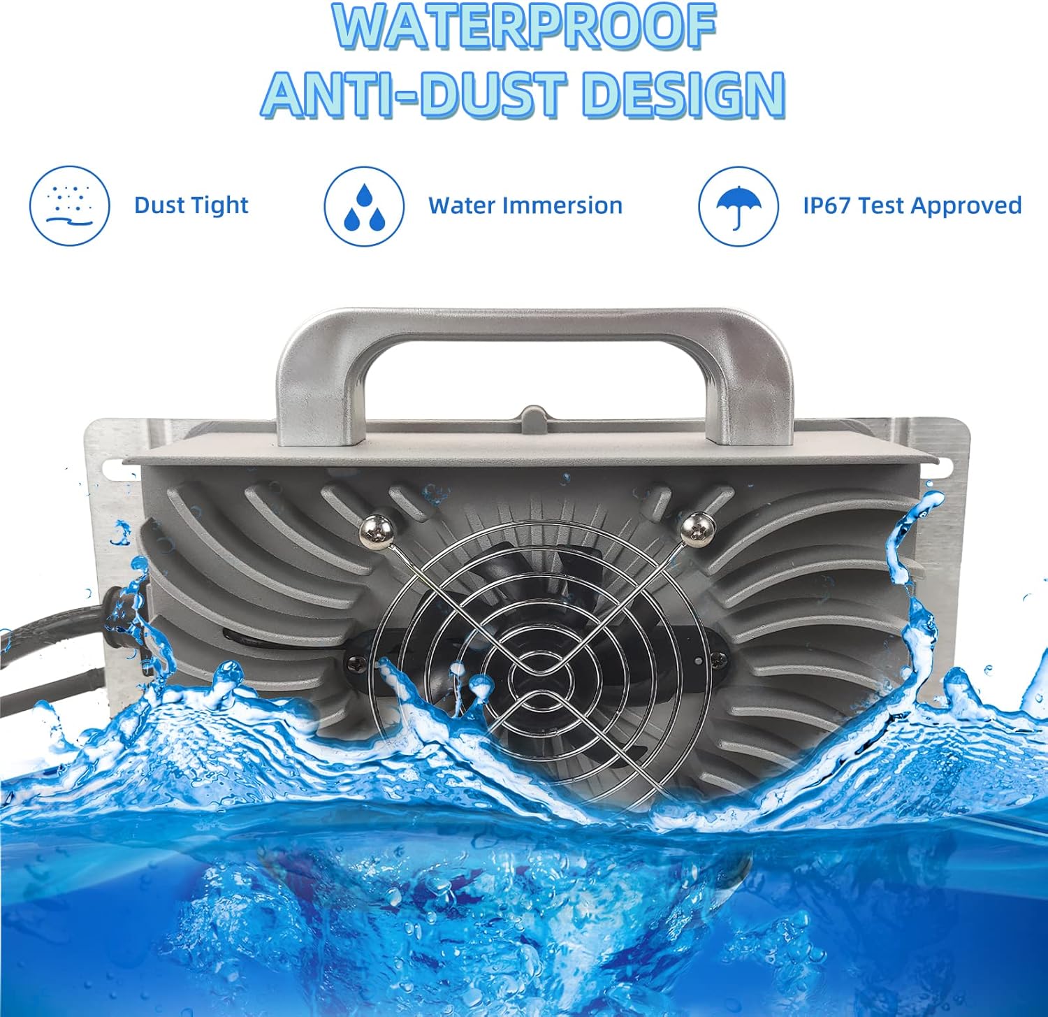 - [PORTABLE & LIGHT WEIGHT DESIGN] - Designed with convenience in mind, the waterproof charger weighs in at only 9 lbs,the light weight charger can easily be taken with you. It is constructed with a durable die-cast aluminum alloy casing providing exceptional durability.