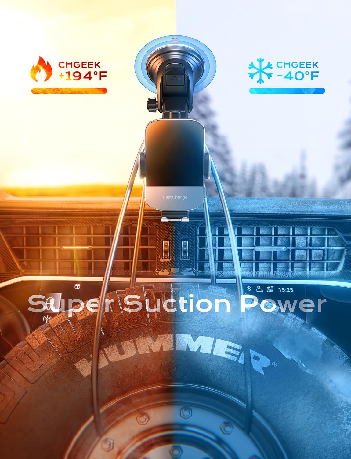 CHGeek Wireless Car Charger, 15W Fast Charging Auto Clamping Car Charger Phone Mount Phone Holder fit for iPhone 15 14 13 12 11 Pro Max Xs, Samsung Galaxy S25 Ultra S24 S23 S22, S21, S20, Silvery