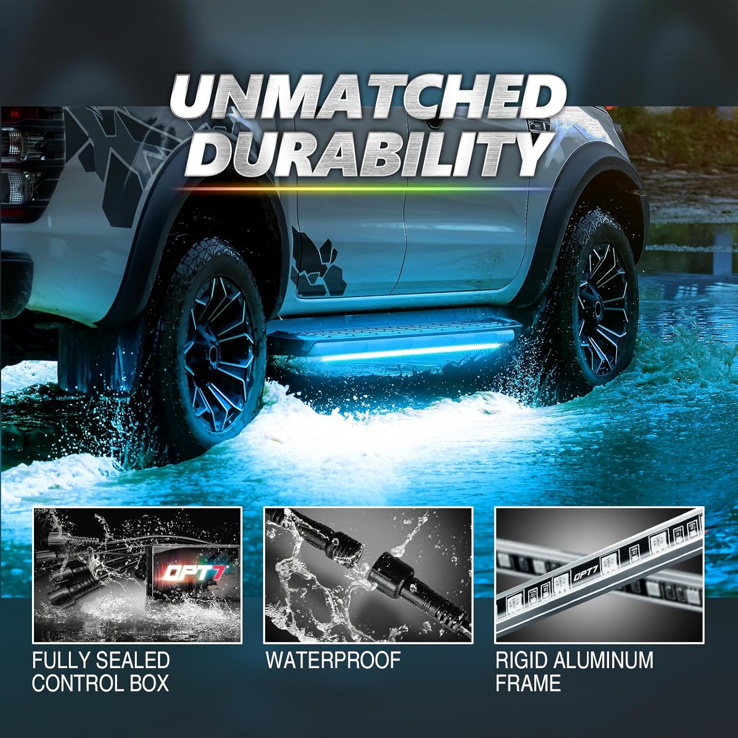 - Easy Installation: Setting up your underglow has never been easier. With a secure rigid aluminum light bar, mounting brackets, and tested inline fuse 12v direct power battery harness, your ride gets a safe and pro-level install without the headaches. Optional: Shop the OPT7 Aura Universal Fuse Tap Adapter Set (B0B7QVF6B9) for even greater ease.
