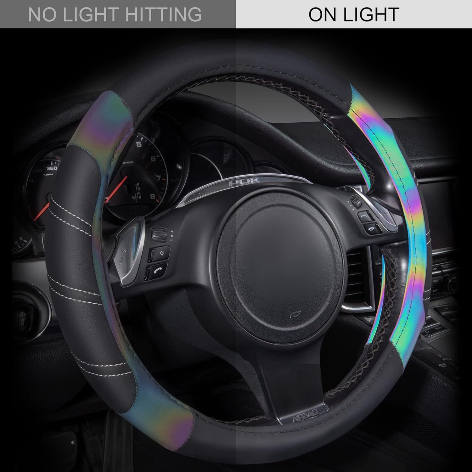 CAR PASS Line Rider Microfiber Leather Sporty 14.5-15 inch Steering Wheel Cover Universal Fits for 95% Truck,SUV,Cars, Anti-Slip Safety Comfortable Design (Black Reflective)
