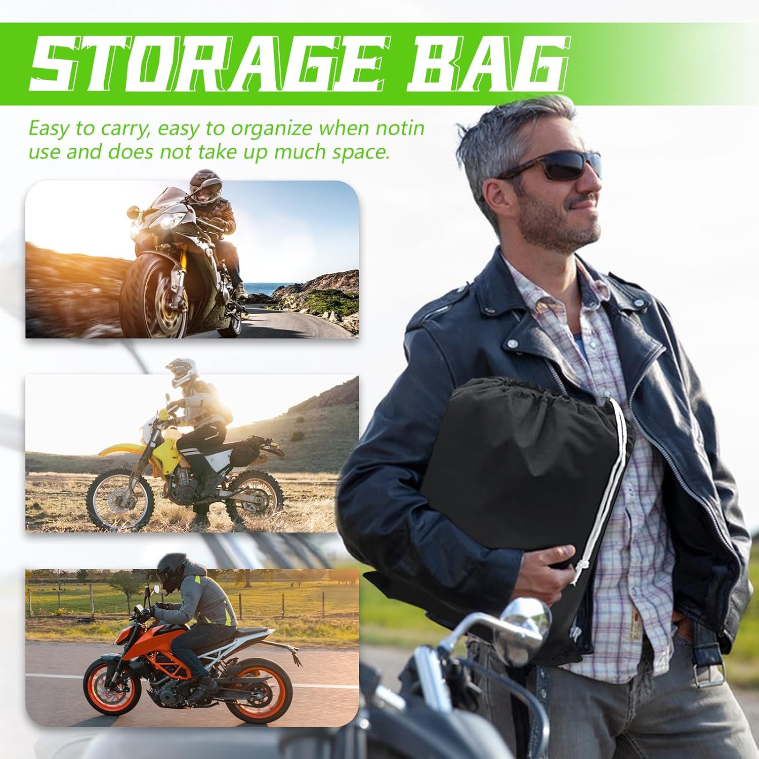 - Heavy Duty Oxford Fabric: Made of 210D premium polyester fabric, lightweight, super soft and designed with double stitching to be more waterproof than ordinary materials.Keeps your motorcycle completely dry and clean, even in the rain