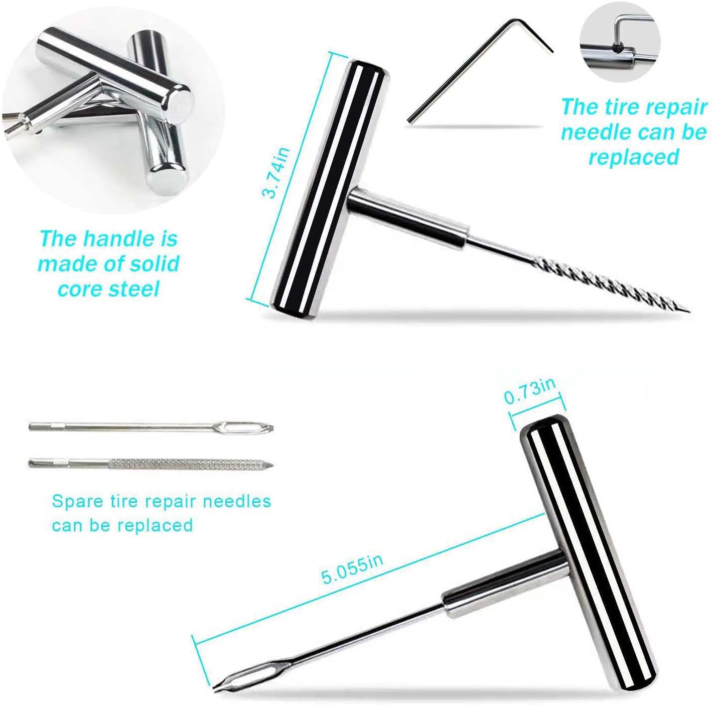 - Superior Quality's Materials - Better than any other brand, our T-handle is made of the solidest A3 steel material which is stronger than others and is hard to break. The Tire Repair Strip is used the best rubber which is durable and not easy to age and harden. Aluminum alloy and stainless steel anti-theft nut can better protect the tire from damage.