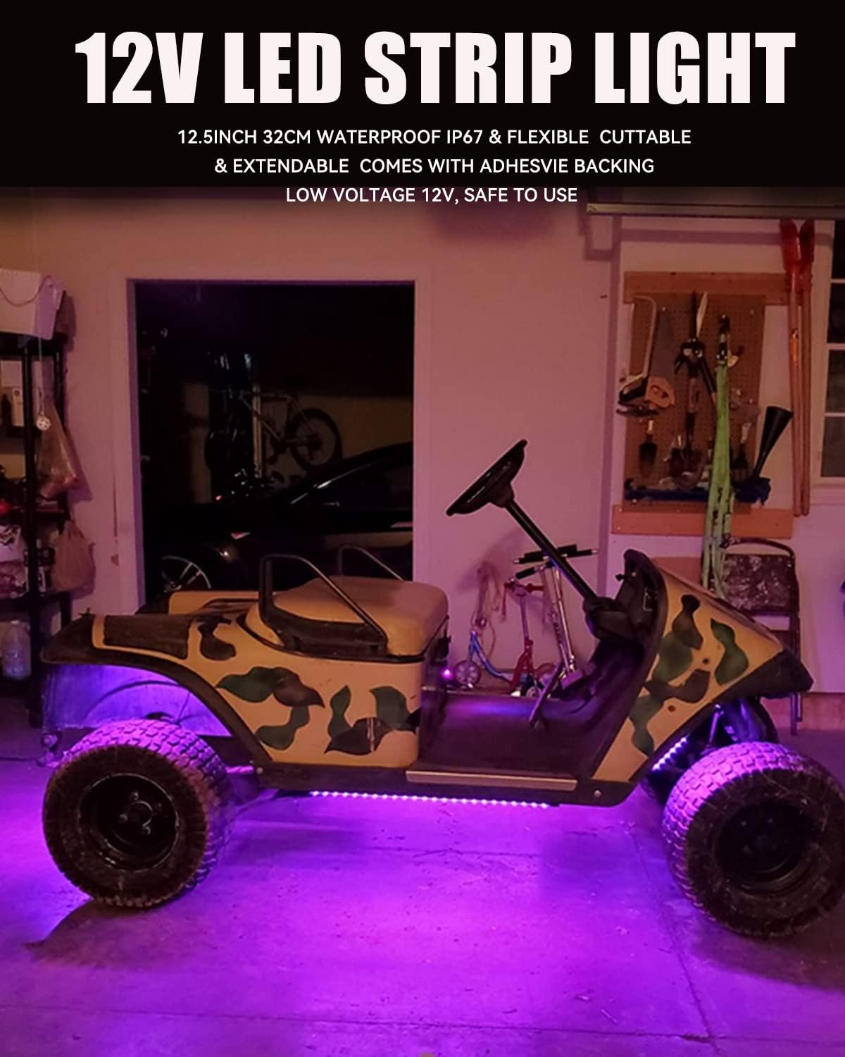 - Recommended Uses For Product : Automotive led strip lights, Car underglows, Golf cart led lights, Motorcycle led light strip, Pontoon Fishing Boat Yacht Kayak Sailboat, Vehicle Exterior, Vehicle Interior Automotive led strip lights, Car underglows, Golf cart led lights, Motorcycle led light strip, Pontoon Fishing Boat Yacht Kayak Sailboat, Vehicle Exterior, Vehicle Interior