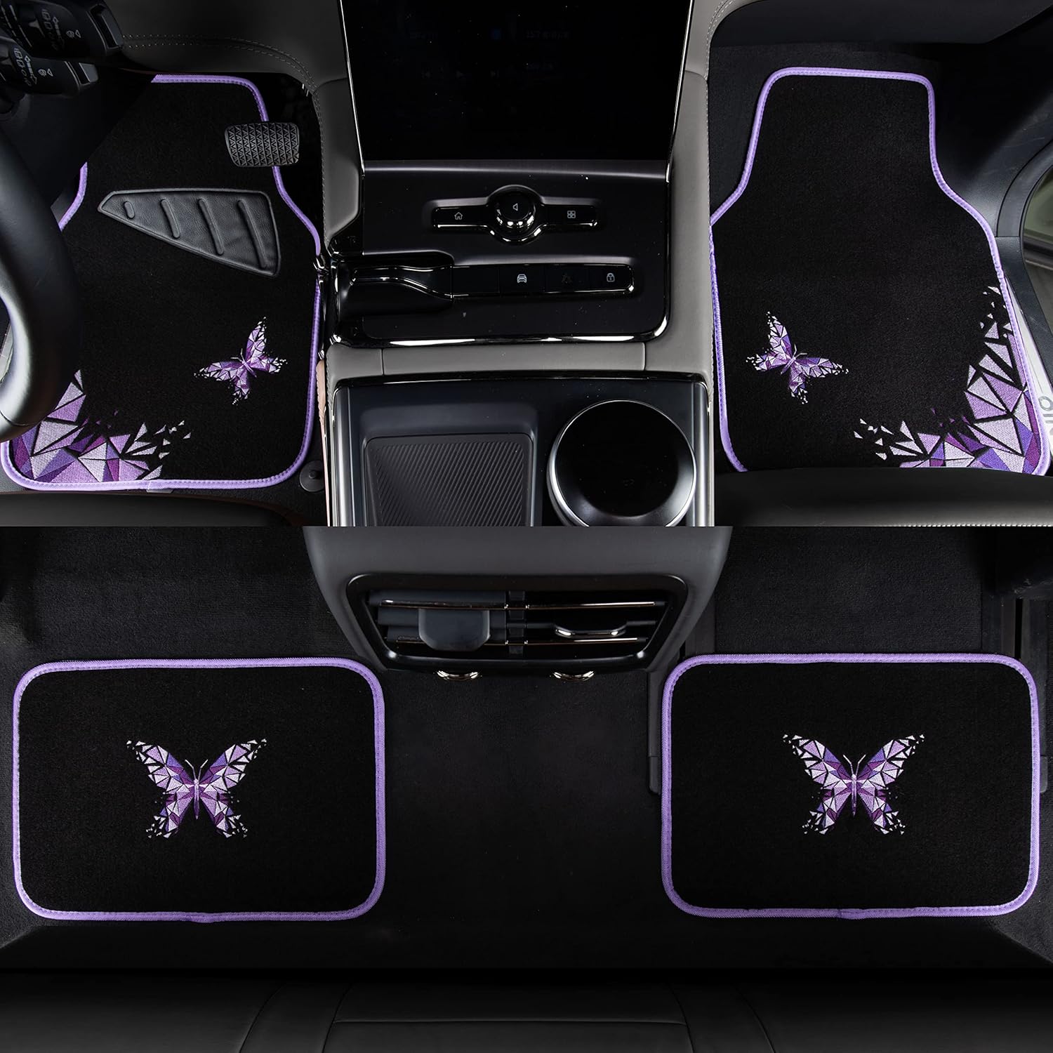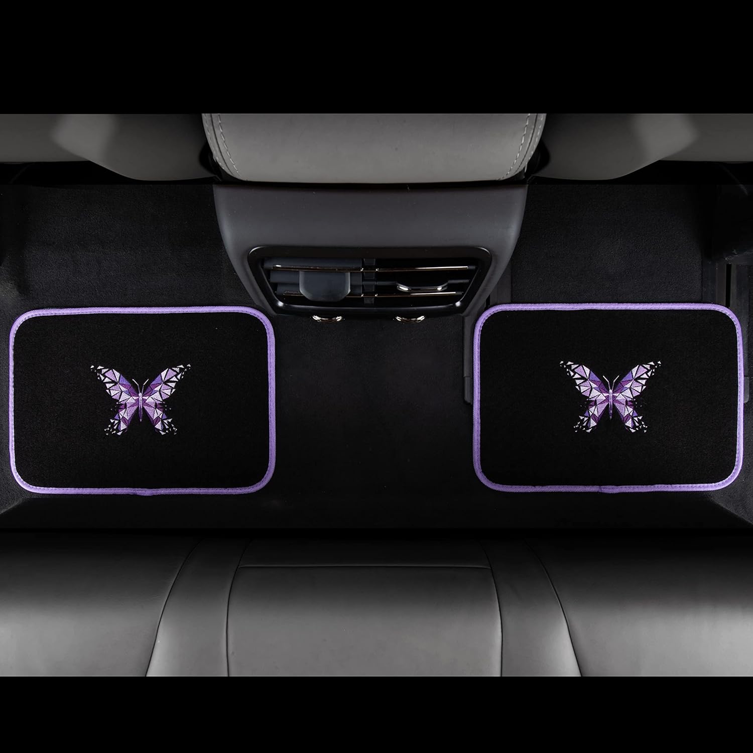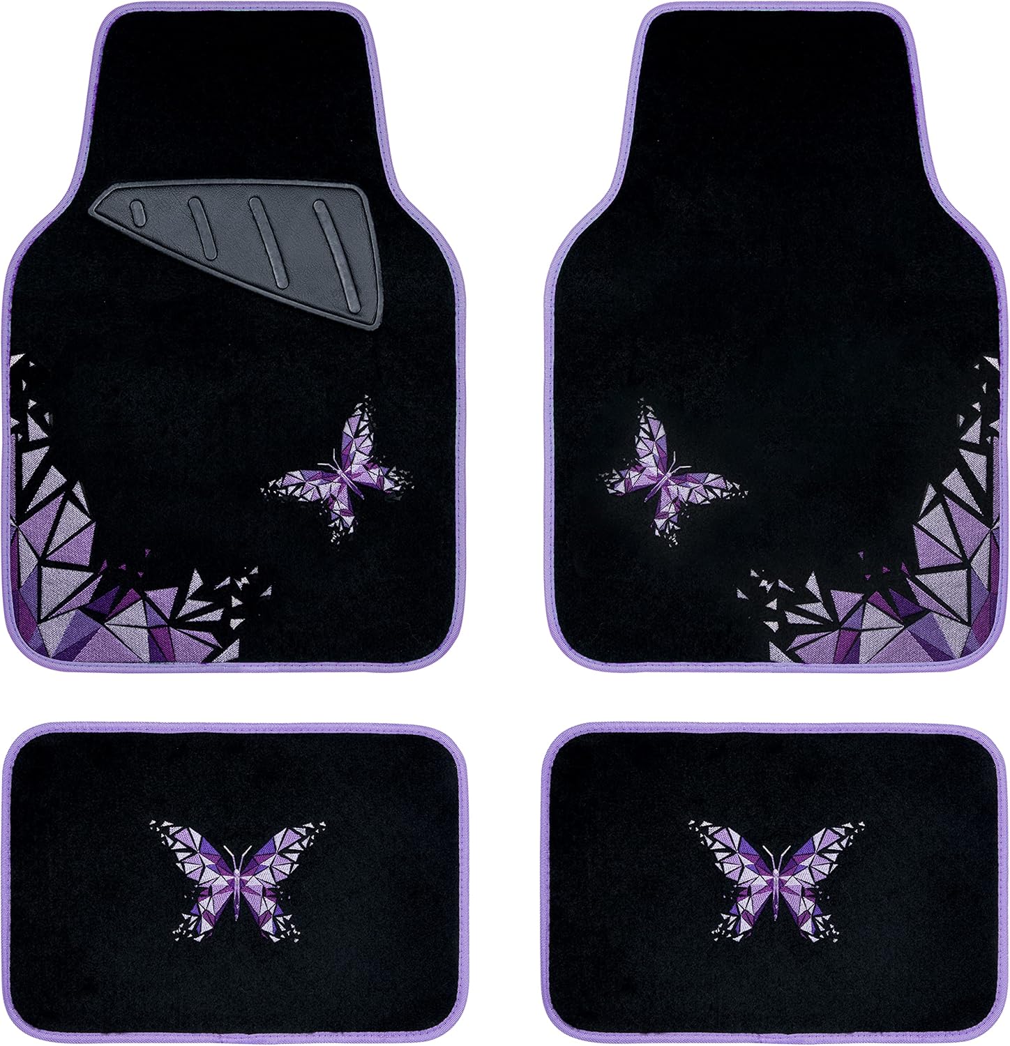 CAR PASS Universal Embroidery Geometric Butterfly Car Floor Mats with Heel Pad-Waterproof-Anti Slip Nibs,Purple Car Floor Mat Fit 95% Automotive,SUVS,Sedan,Vans,for Women,Girly(Purple Butterflies)
