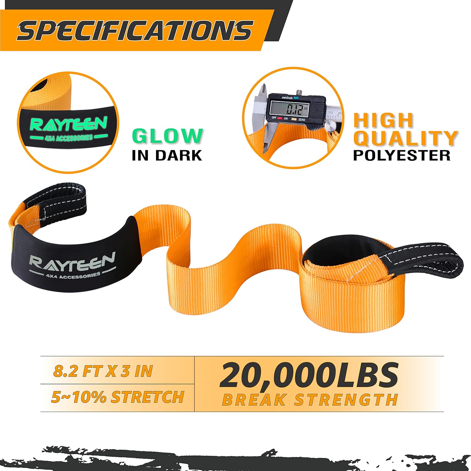 - 【SUPERIOR MATERIAL】All RAYTEEN recovery tow ropes are manufactured by ALL-NEW premium polyester to ensure its performance and users’ safety while other brands use second hand material and over advertise up to 50% of its break strength.