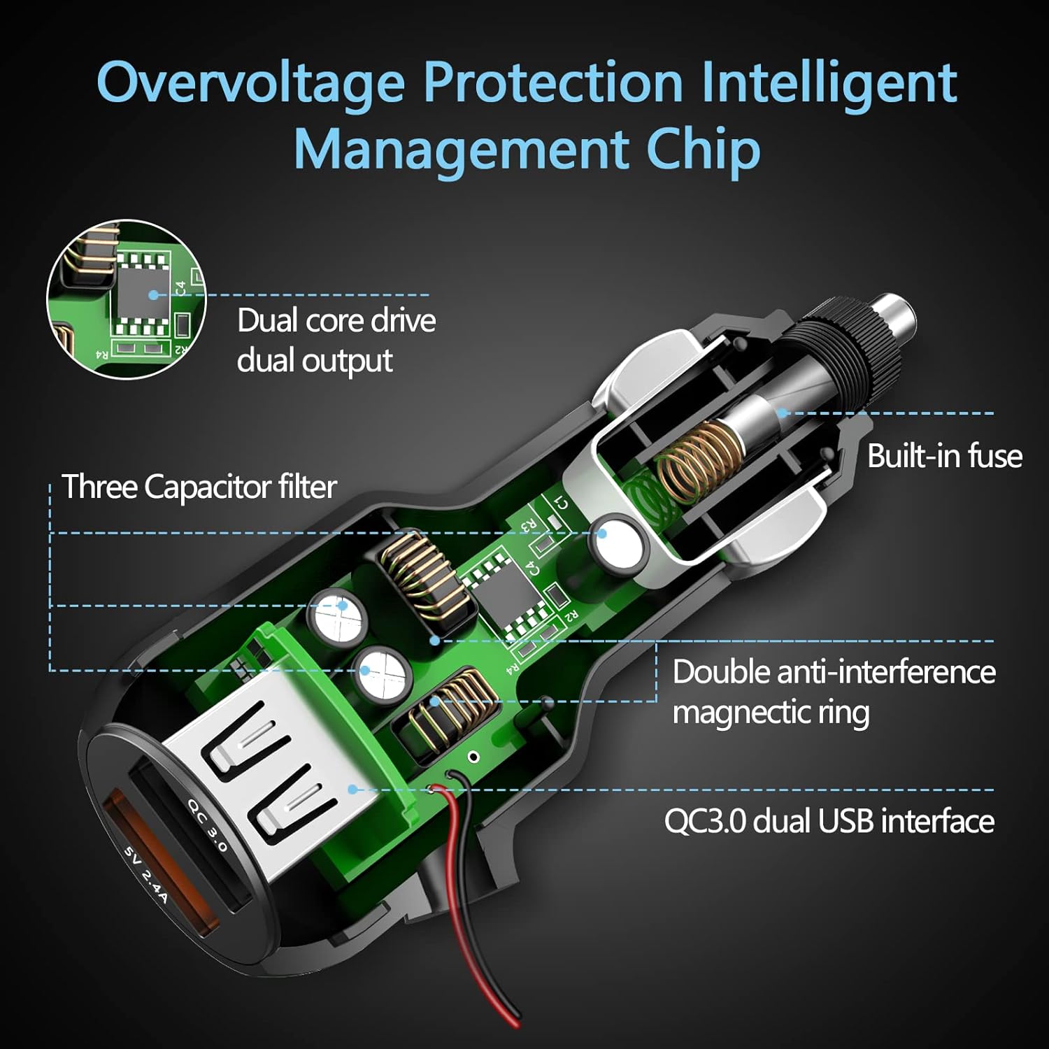 - 【High quality】:Good design, advanced technology, premium materials the soft blue LED light indicator will help you to locate the car adapter easily, and it also will provide convenience for you to pull and plug USB power cables in dim light
