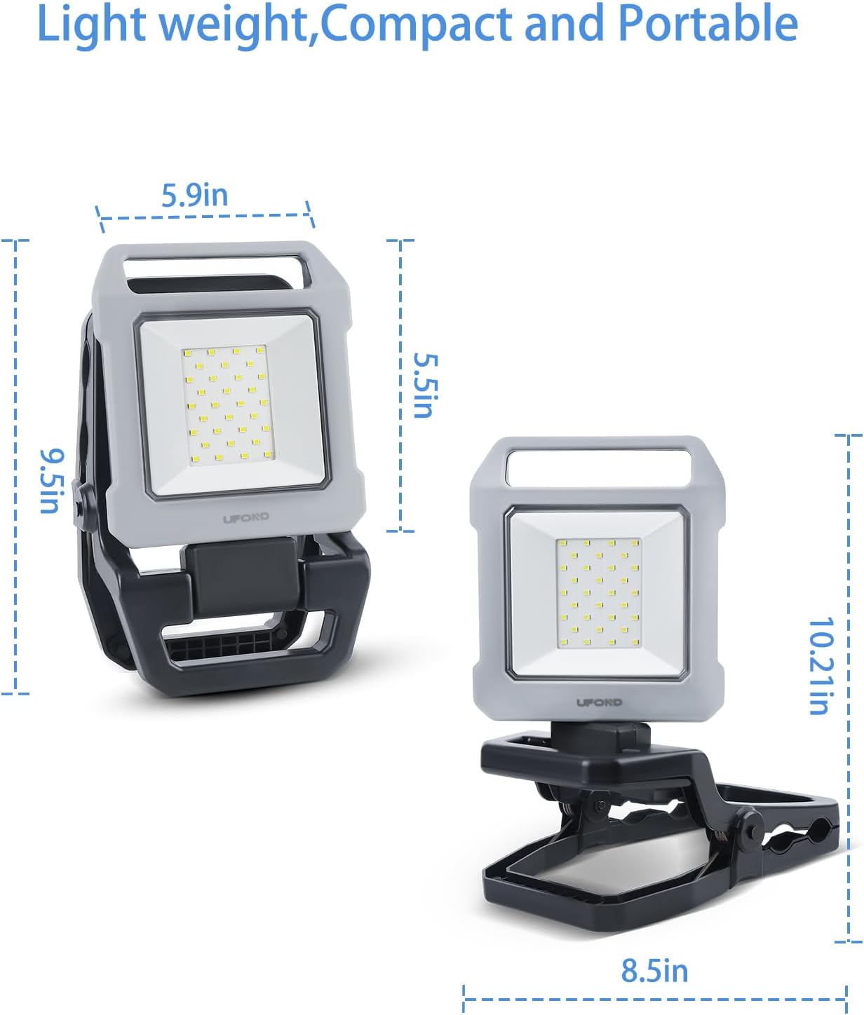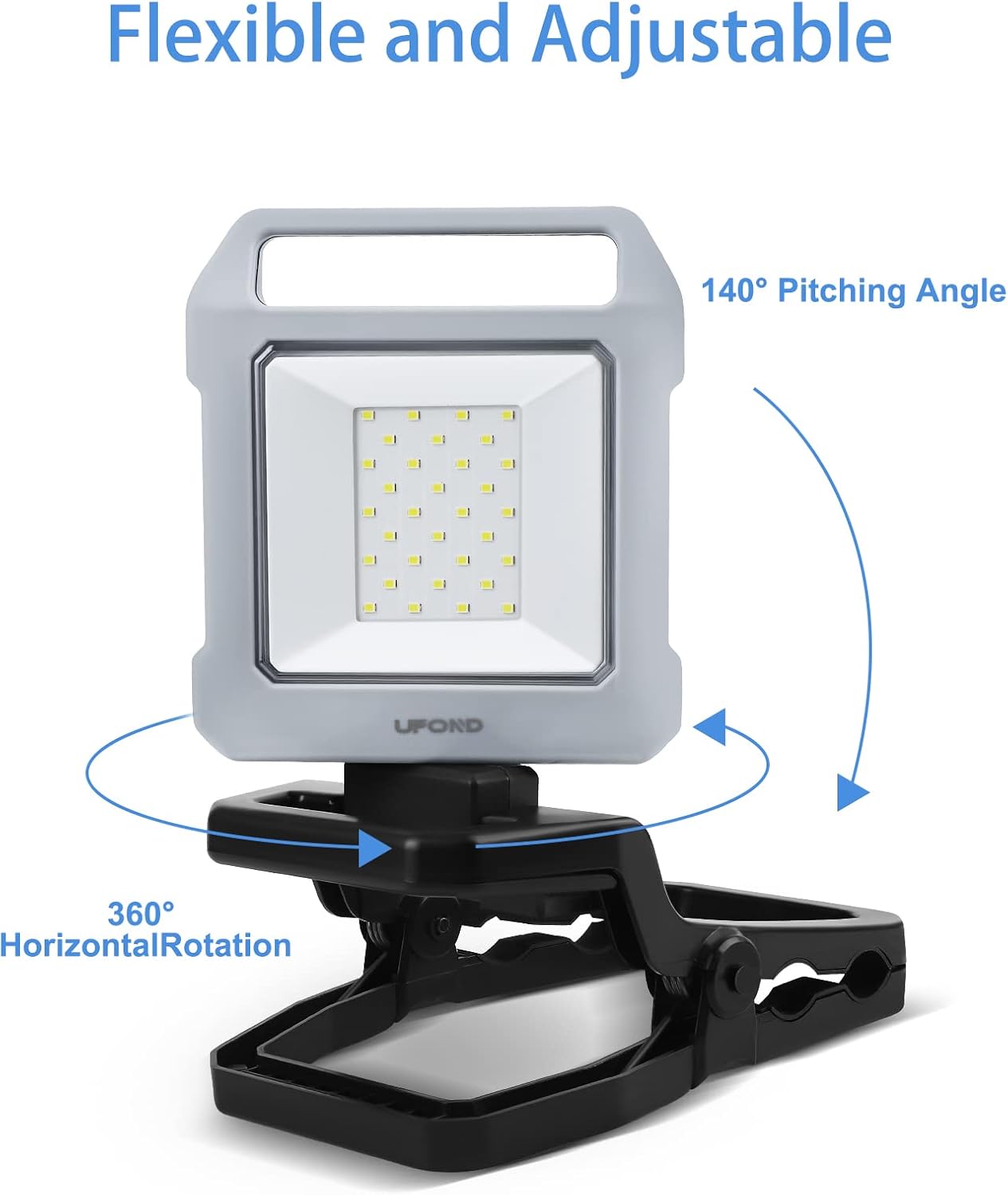 UFOND 2500LM LED Work Light Rechargeable,12h Portable Battery Worklight Cordless,6600mAh Waterproof Floodlight Brightness Adjustable,Outdoor Construction Clamp Light for Garage Camping Car Repairing