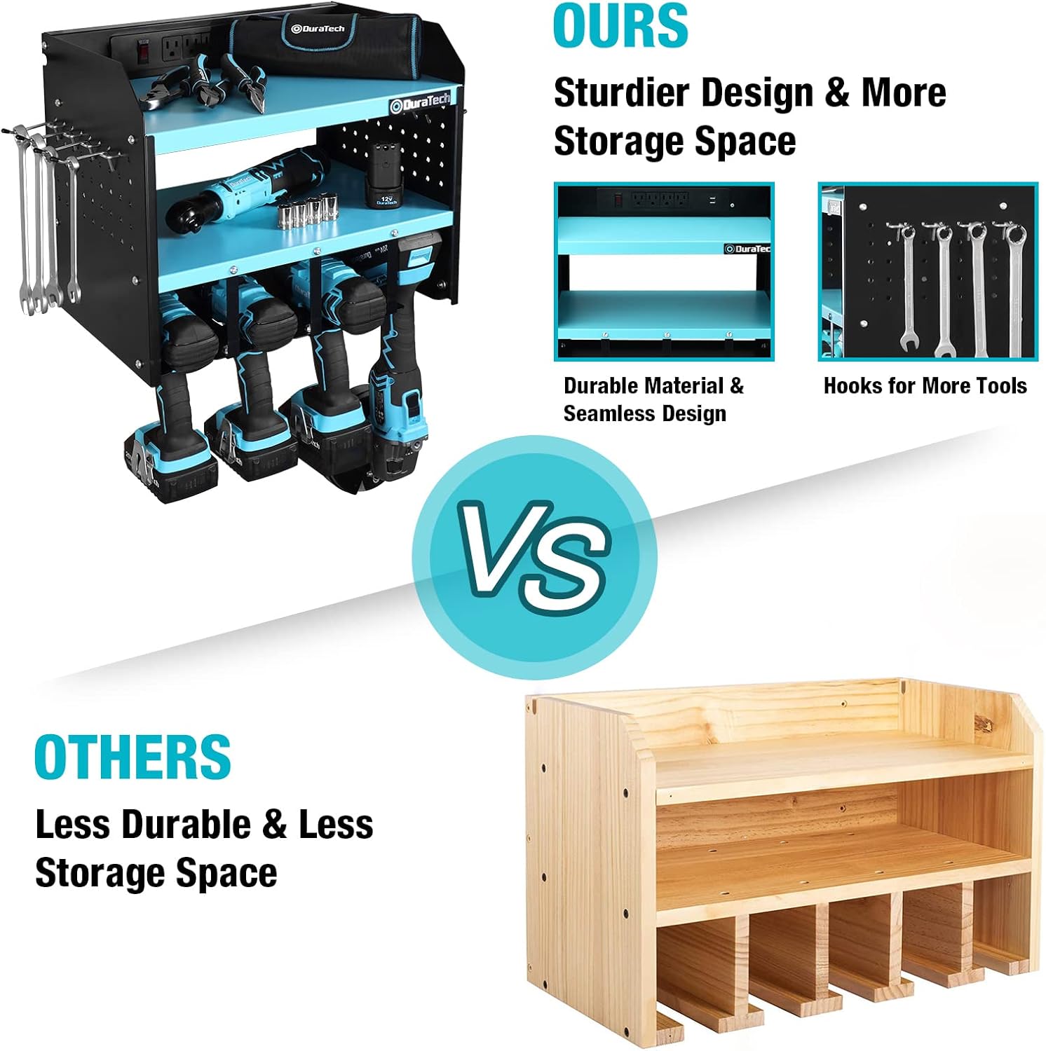 DURATECH Power Tool Organizer Wall Mount with Power Strip, Carbon Steel, Blue, 16.8in Width, 10.9in Depth, 14in Height