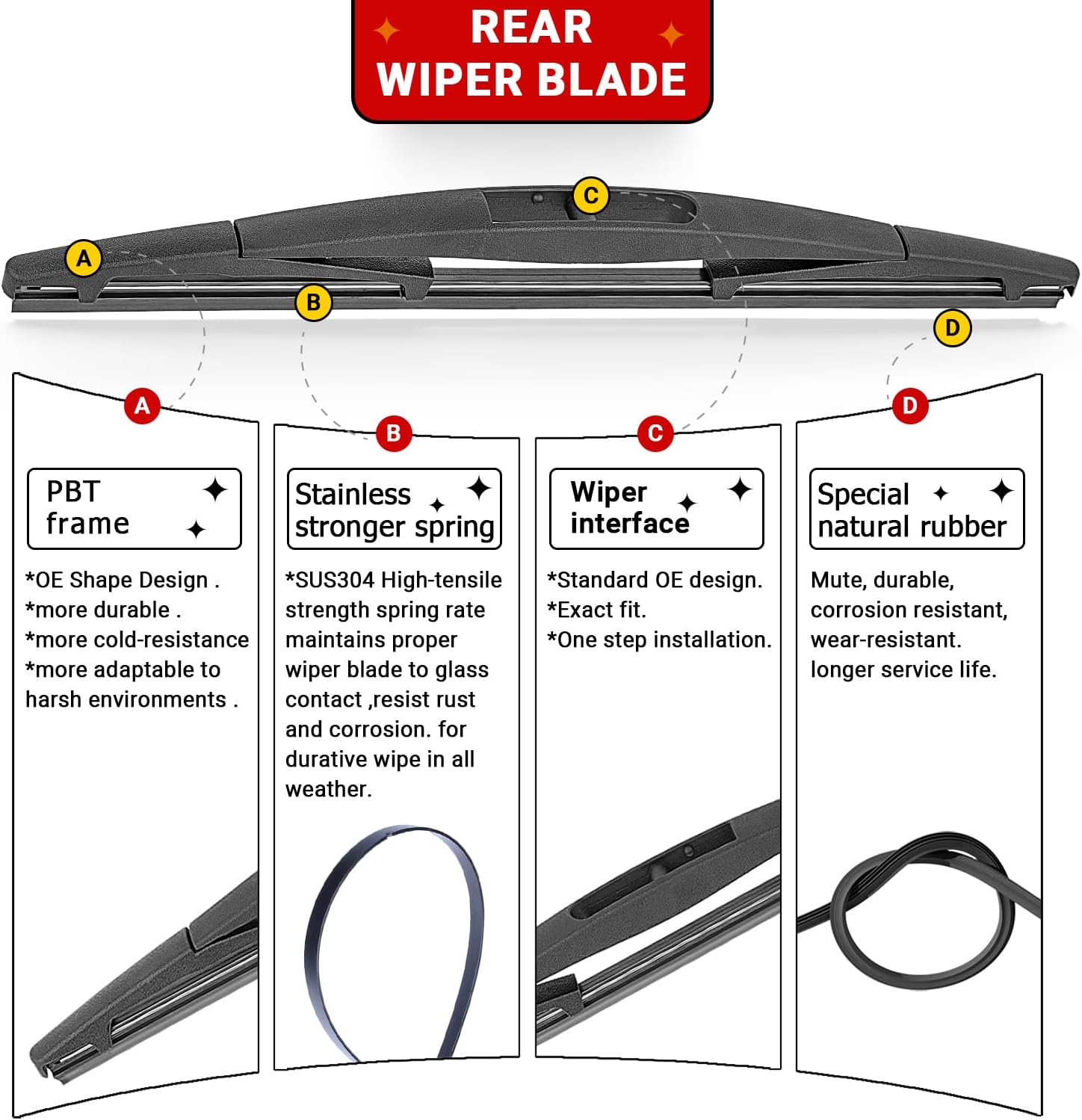 - {WIPER PERFORMANCE}: Natural rubber material making sure the wiping is the best, quiet wiping without judder or squeaking, resistant and a long service life.