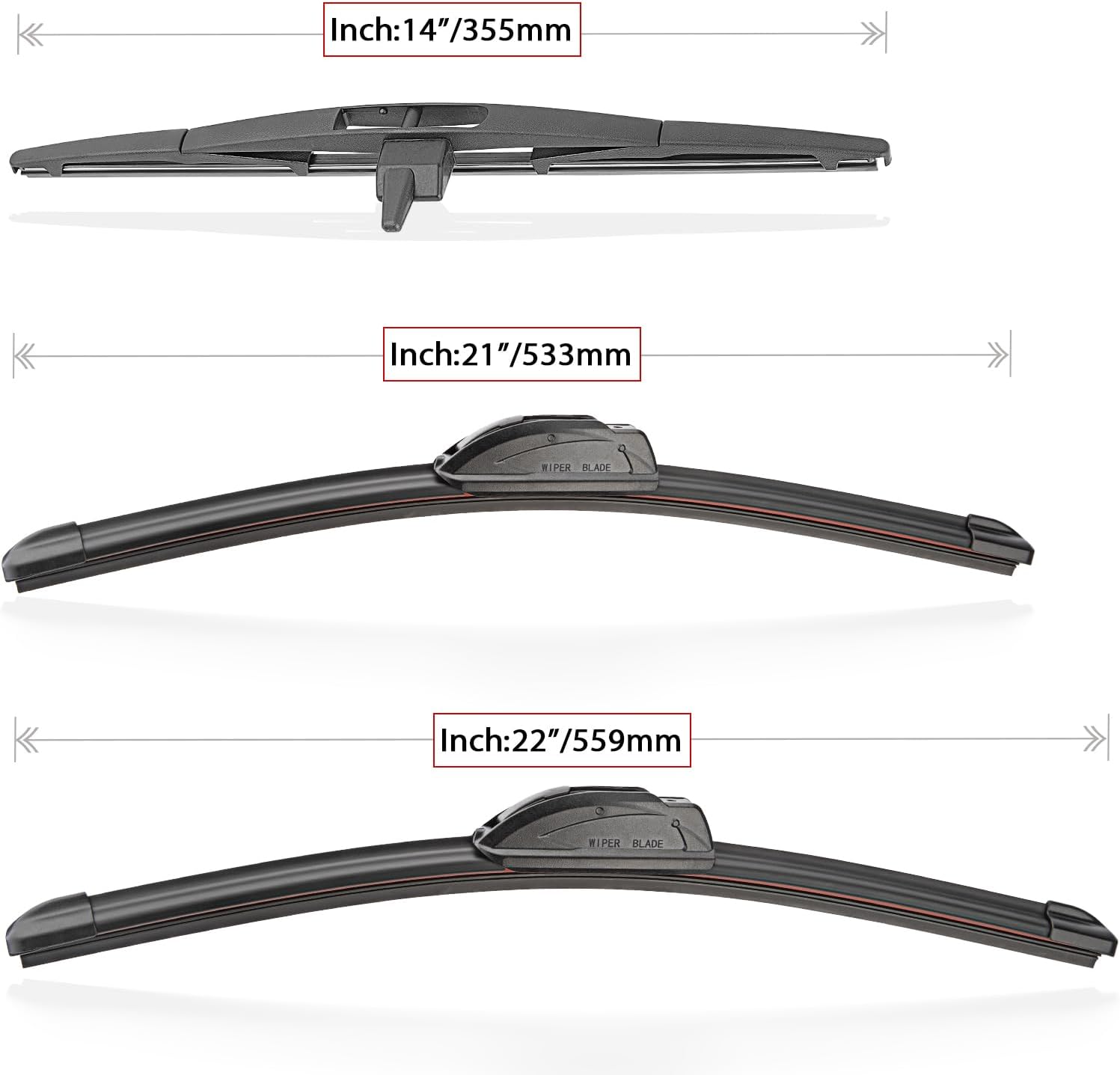 Windshield Wiper Blade Set Replacement for 2009-2015 Honda Pilot Original Equipment Replacement Front Rear Wiper Blades - 22"/21"/14" (Pack of 3)