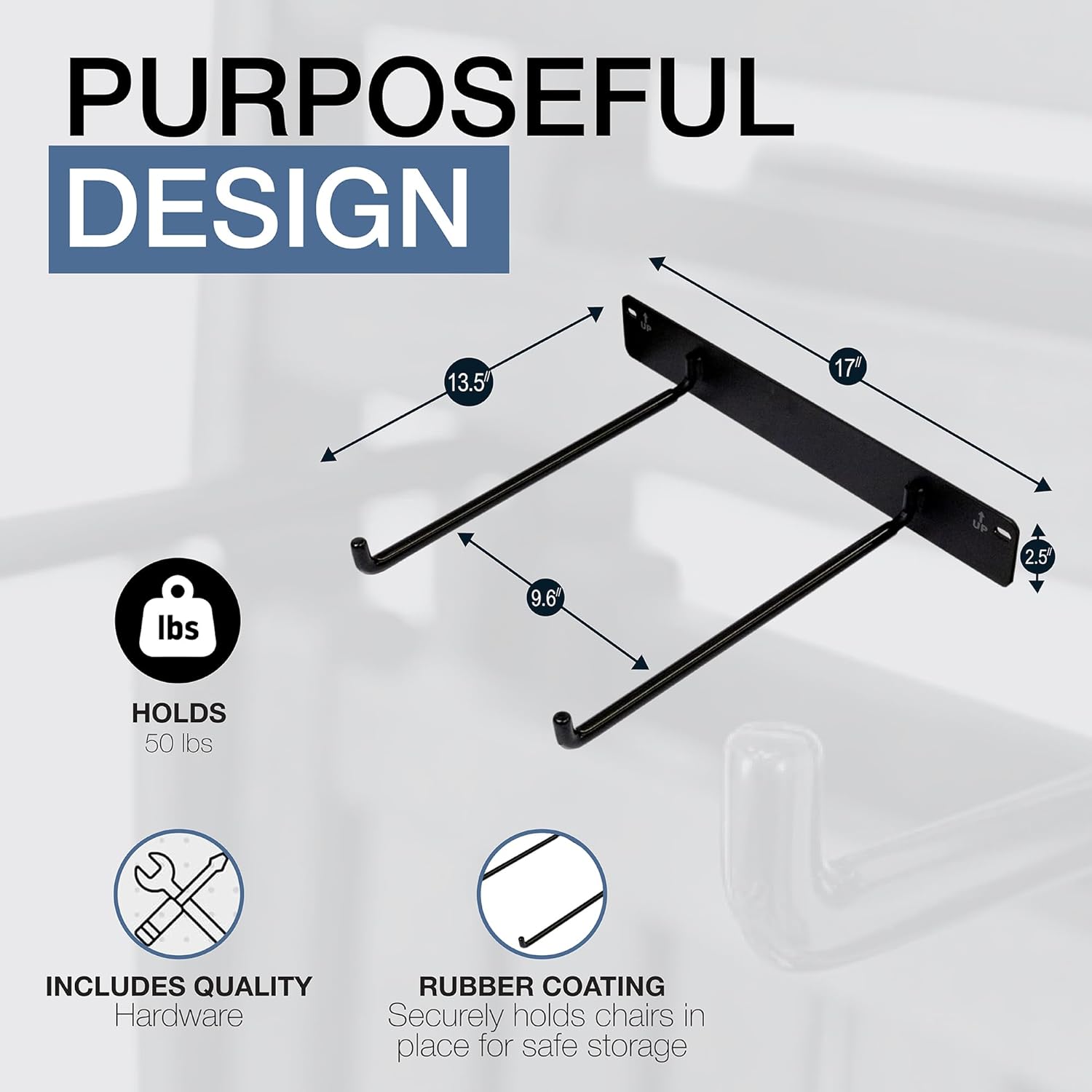 - Heavy Duty Steel Construction – Built from solid, powder-coated steel, this folding chair rack supports up to 50 lbs. Whether you need chair holders for storage or folding chair hangers for garage use, this durable solution is made to last for years.