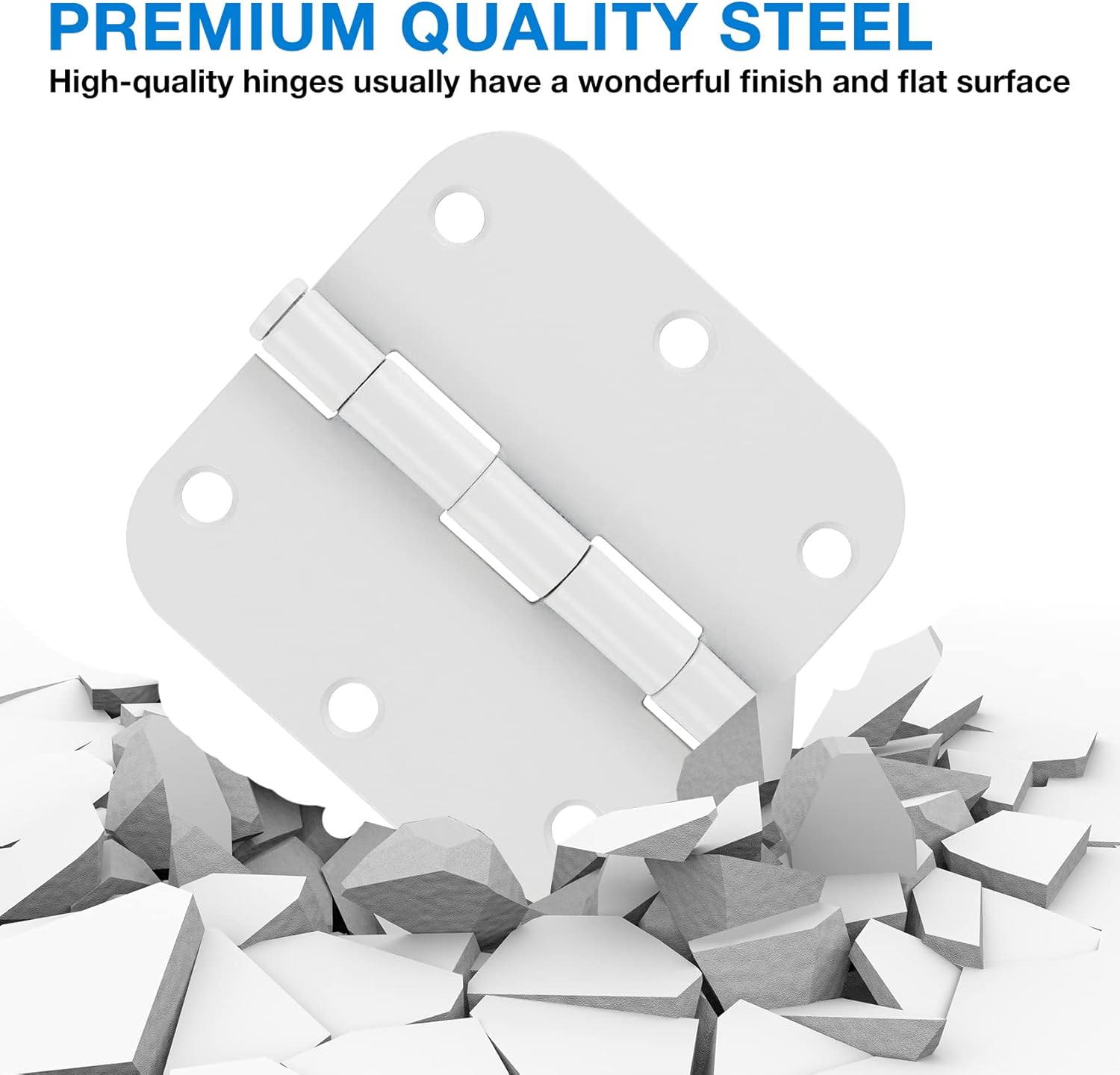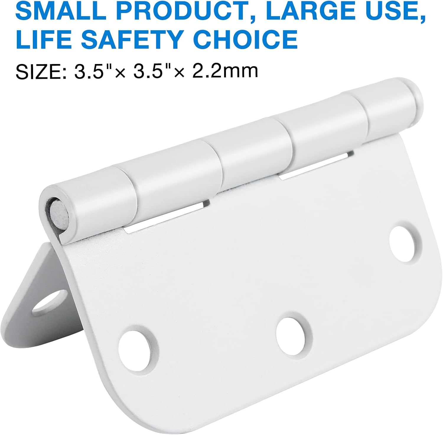- 3.5 inch door hinges white with 5/8 rounded corner and 6 holes for front door, cabinet, wooden box. Indoor door hinge white Includes 18 free short screws and 3 extra long screws for quick and easy installation. White door hinges can be rotated 270 degrees.