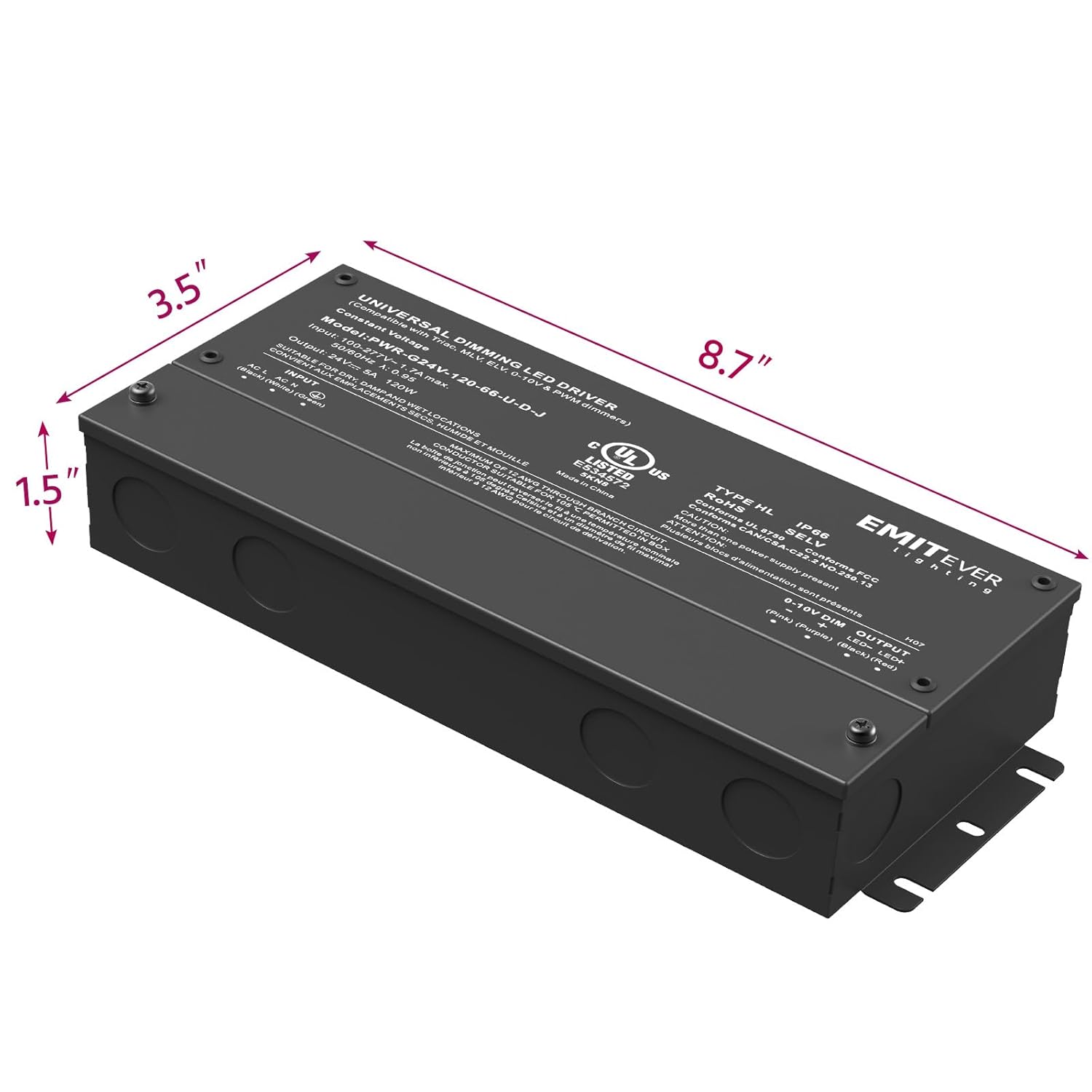 EMITEVER 120W Dimmable LED Driver, 24V Triac Dimmable Power Supply, AC to DC Transformer for LED Light, Compatible with Lutron and Leviton Dimmer, Waterproof IP67 and UL Listed