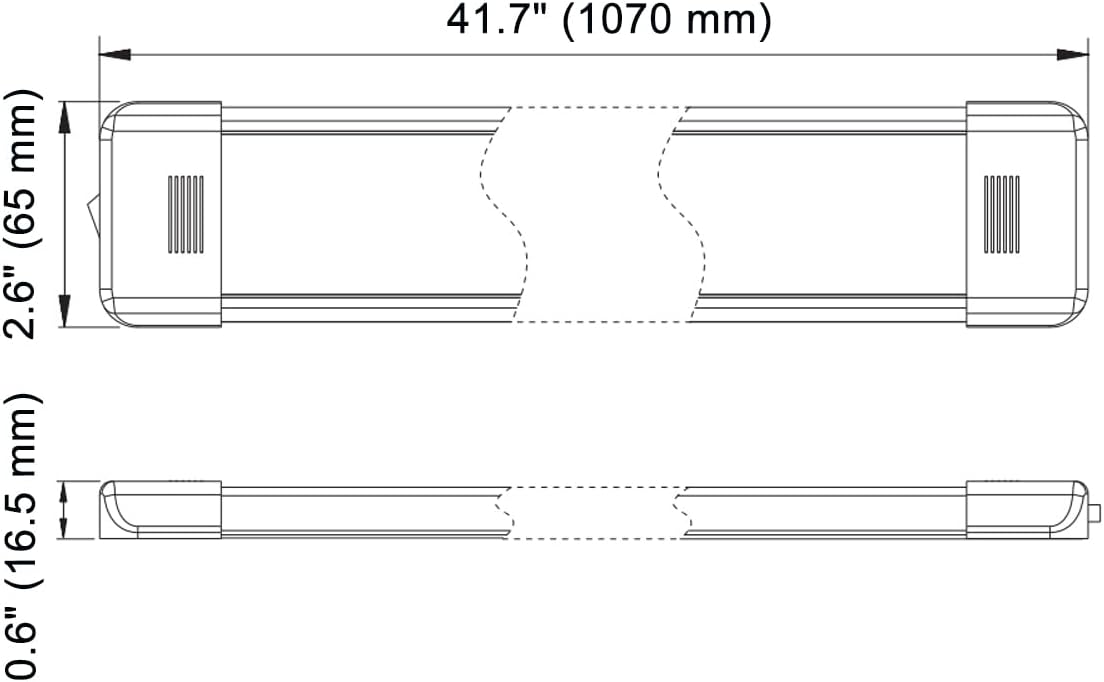 RV Cargo Truck LED Interior Utility Light Fixture 42.1" x 2.6", High Lumen-Output Low Current Draw, Frosted Lens 6000K Cool-White Even Diffused Beam, On/Off Rocker Switch 12V-24V DC, 1-Pack