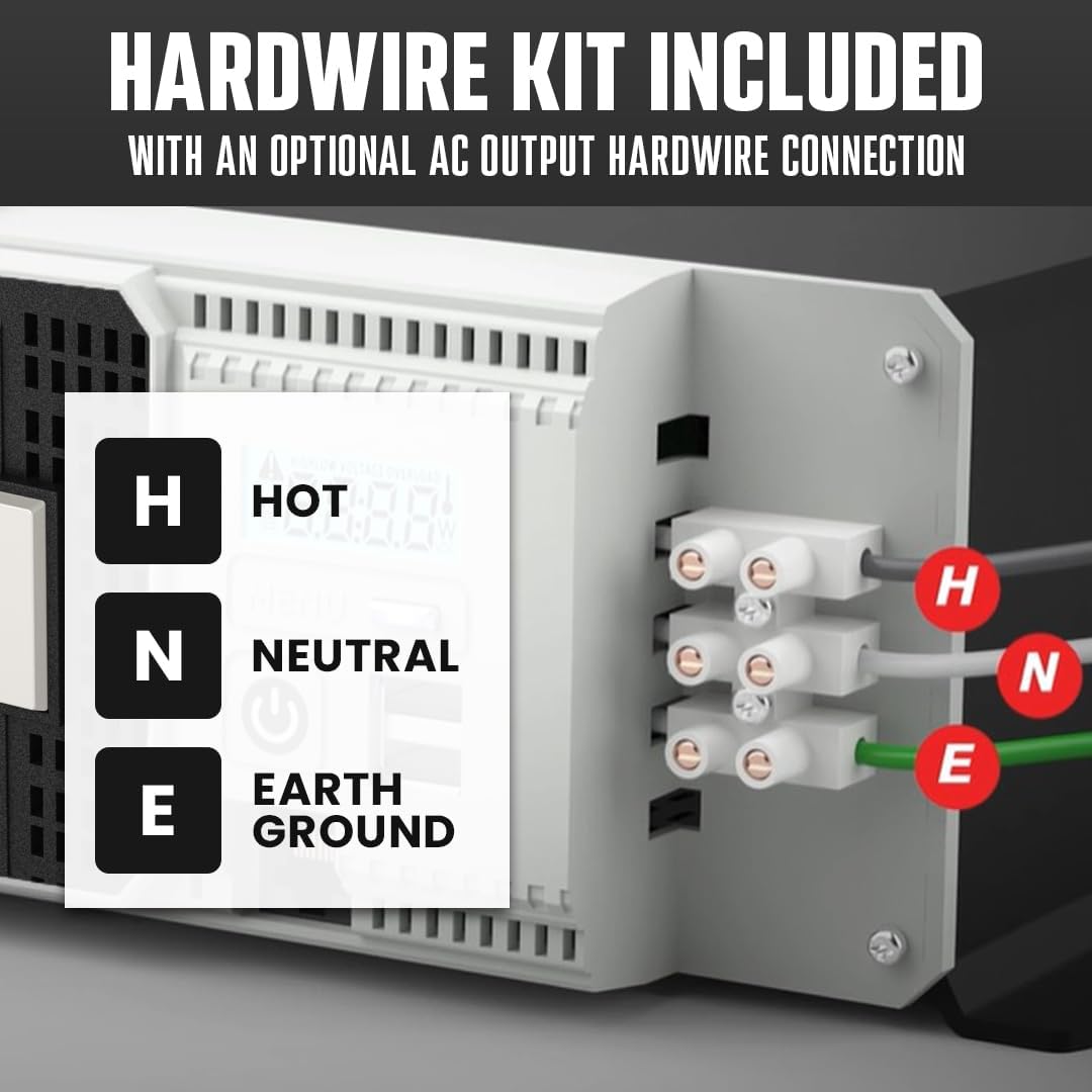 - ADVANCE PROTECTION - This inverter has all the protections that you will need. Overload, over voltage, under voltage, high temperature and short circuit. All of these protections are displayed on the LCD screen, as well as input voltage, output wattage and battery level.