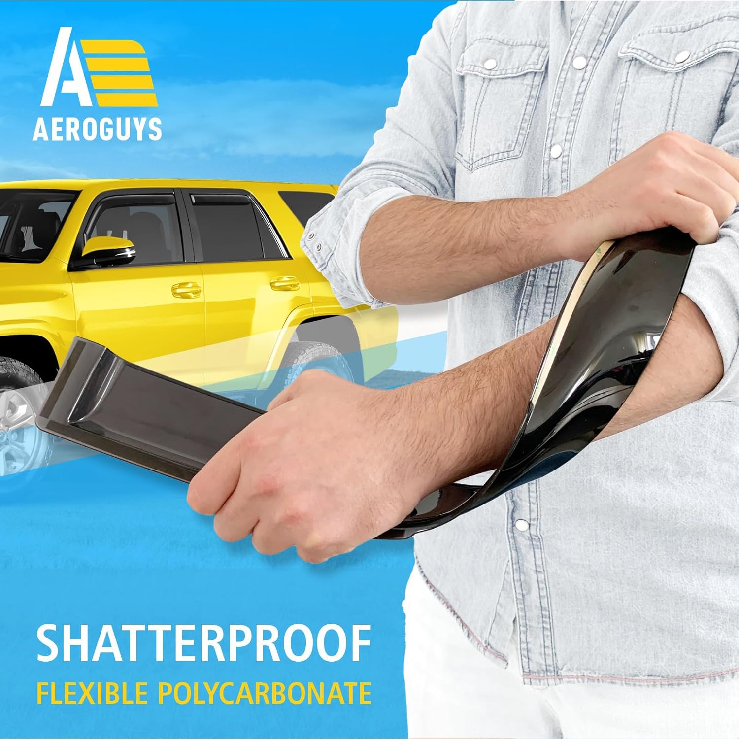 - Incredibly Durable AEROGUYS Auto Window Deflectors β They are made with strong and tough polycarbonate which is clear and scratch-resistant. They also provide UV protection making your ride more comfortable under all weather conditions.