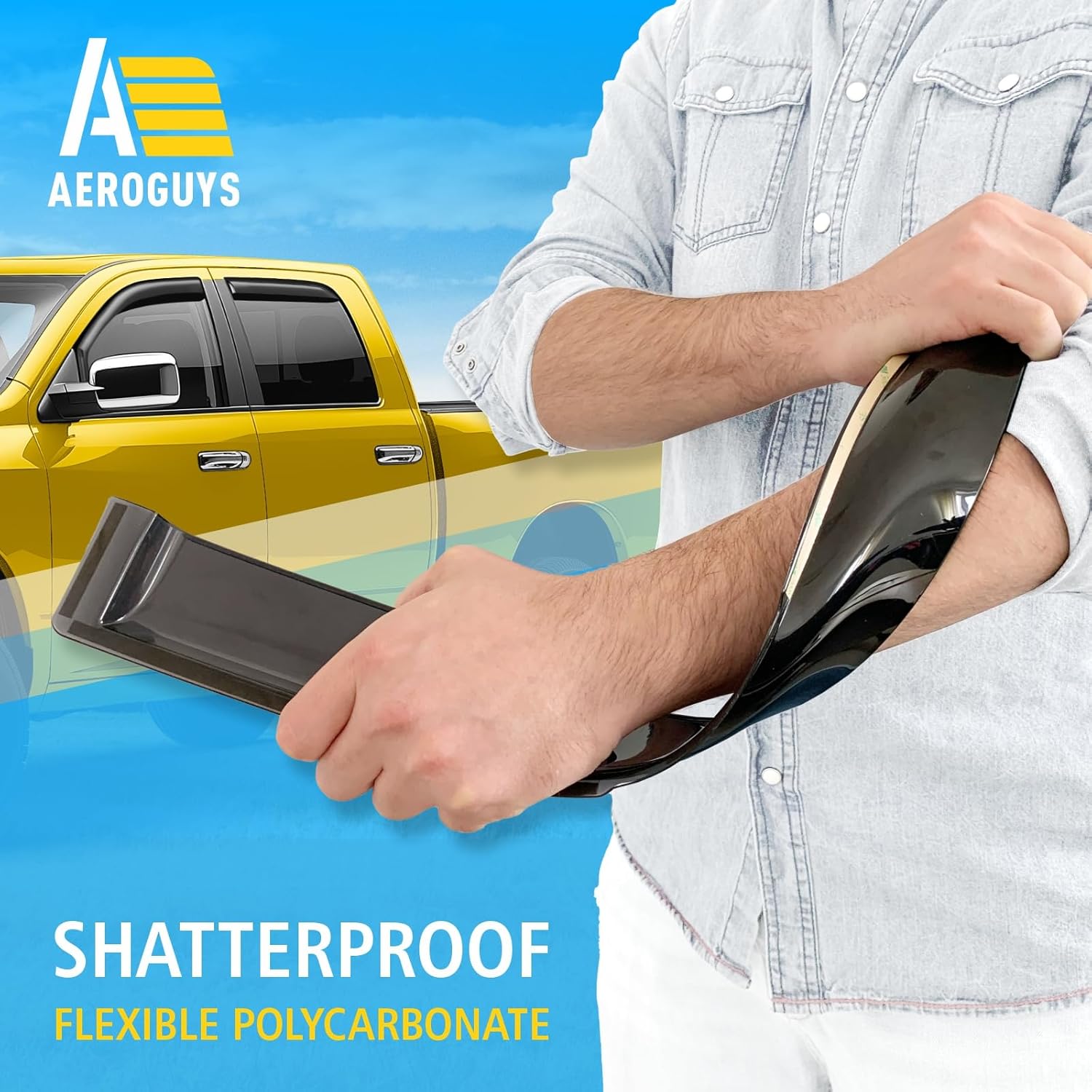 - Incredibly Durable AEROGUYS Auto Window Deflectors β They are made with strong and tough polycarbonate which is clear and scratch-resistant. They also provide UV protection making your ride more comfortable under all weather conditions.