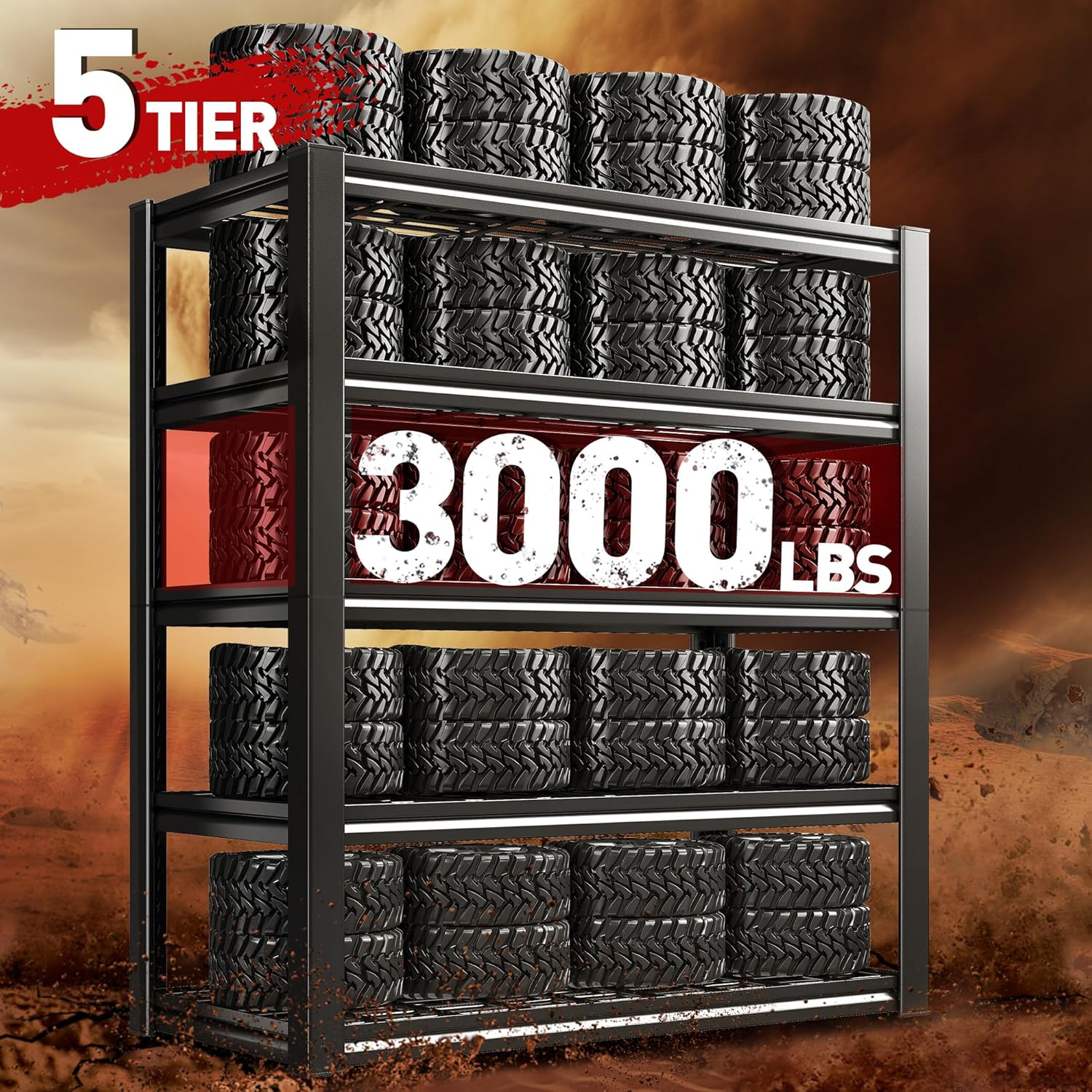 - 【3000 LBS Capacity Sturdy & Storage Shelves】REIBII garage shelving heavy duty has thickened double metal legs.Shelving is made of high-quality metal, instead of flimsy particle board, sturdy and stable than ordinary garage storage shelves. Each garage shelving capacity 600 lbs