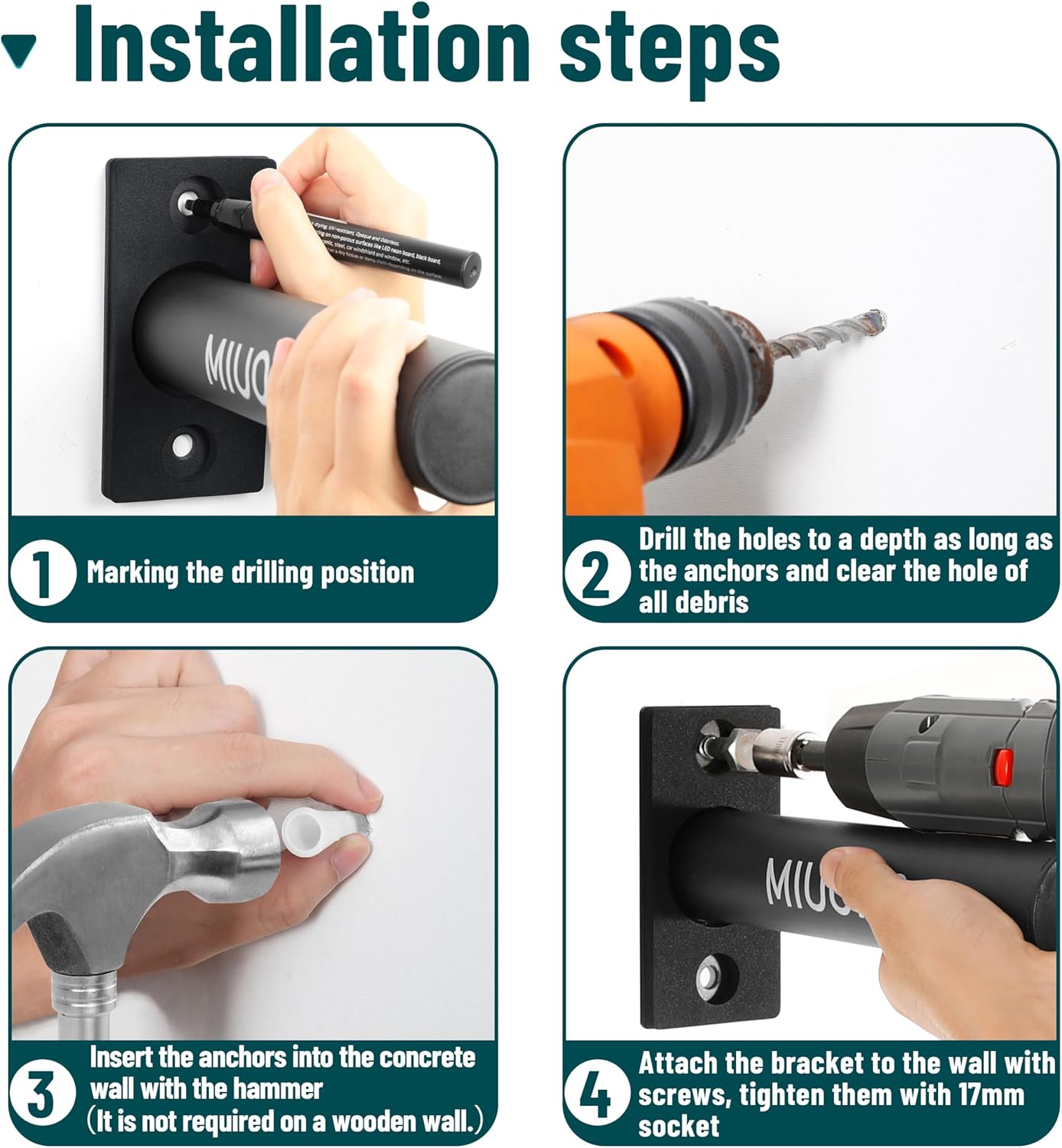 - Package Included and WARNING: 4-pack Weight plate holders, Upgraded 8-pack larger hex lag screws available for wood and concrete wall. WARNING: Do Not Mount the Weight plate holder on DRYWALL. It may fall off and damage the wall if you load it with 3 plates (20kg plates). Only mount it on a wall that can support its weight.