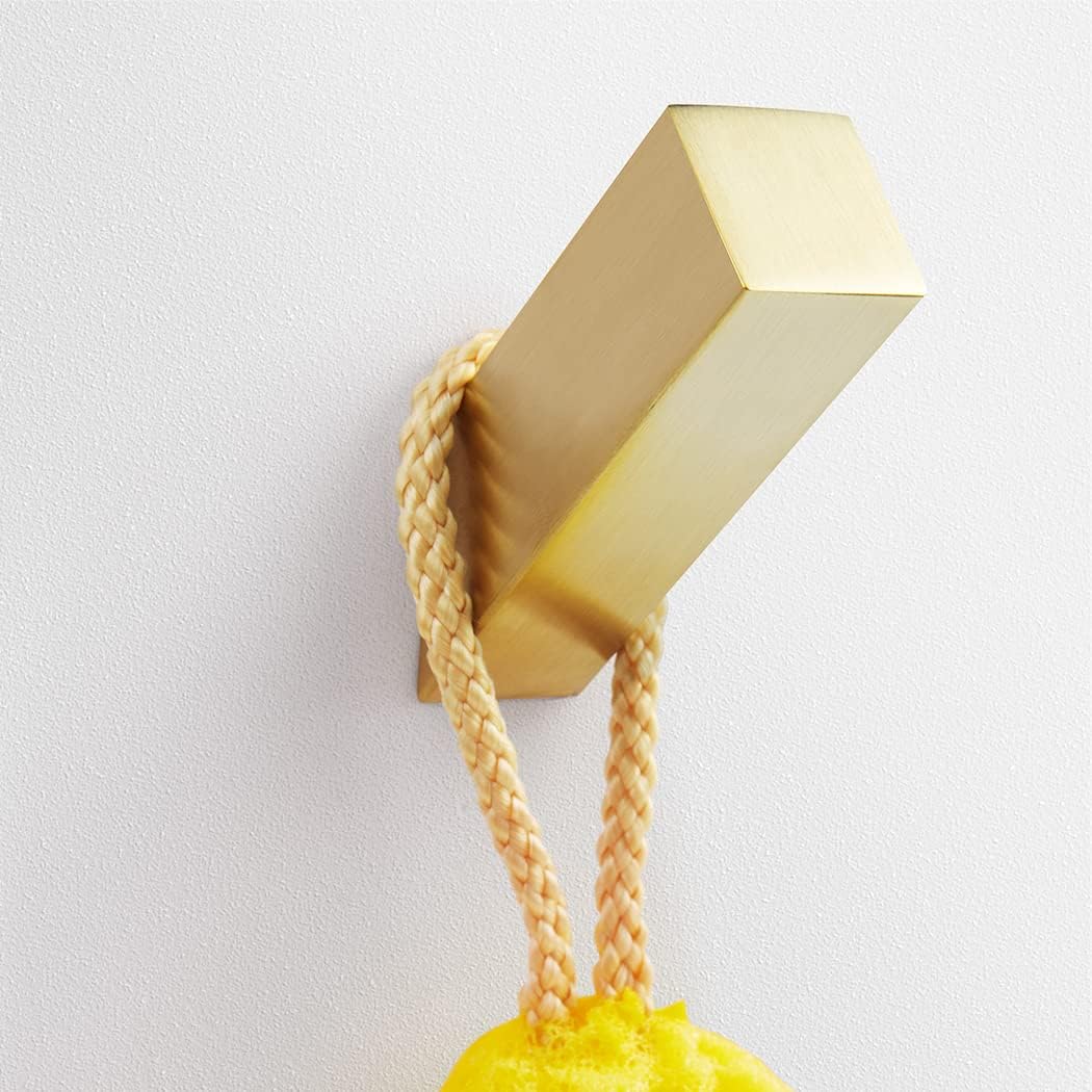 NINETREX Gold Towel Hooks for Bathroom Modern Wall Mounted Heavy Duty SUS304 Stainless Steel Hook ,Square Robe Hooks for Bathroom Kitchen Entryway,Brushed Gold,4 Pack