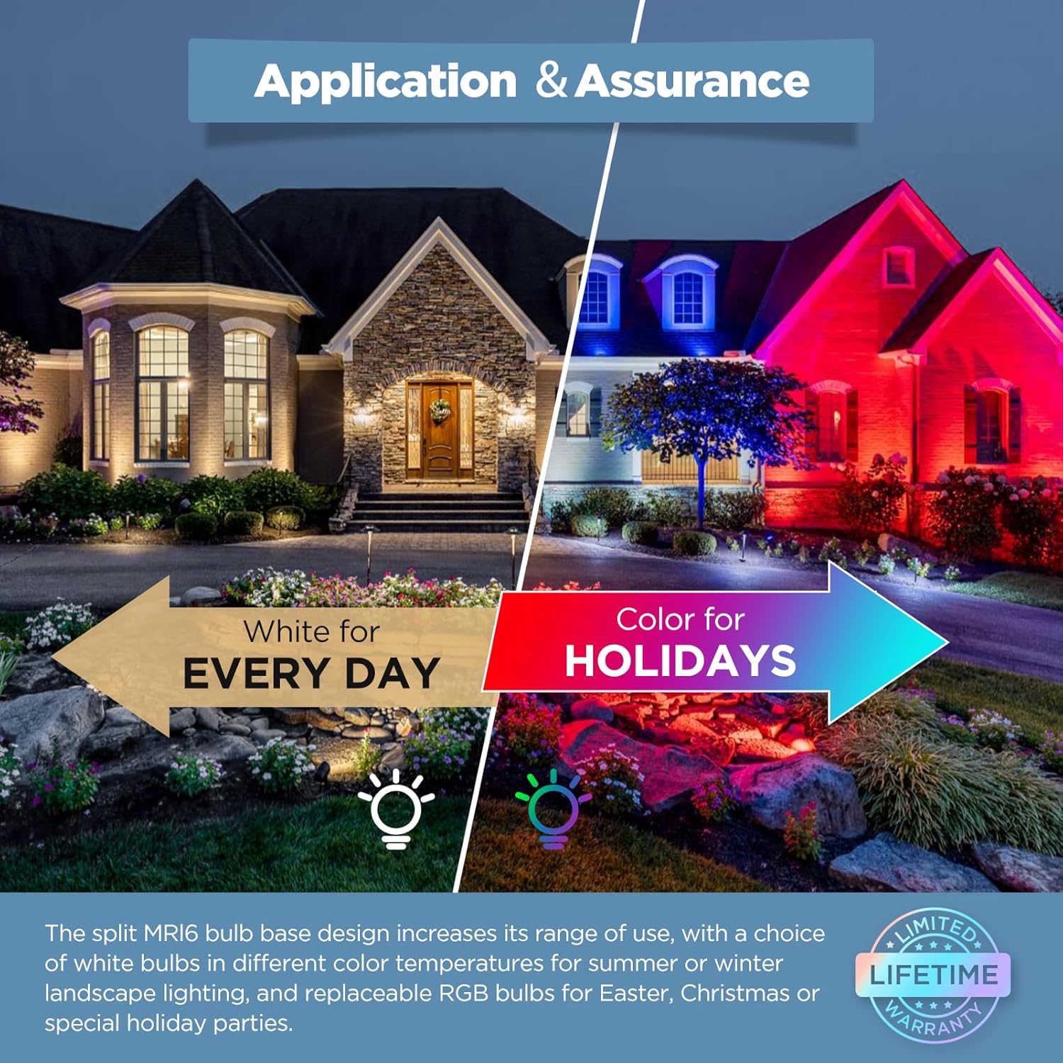 - VARIABLE LANDSCAPE LIGHTS: Bi-pin base (GU5.3) designed for MR16 bulbs, maximum withstand power of 50 watts, according to the season, scene or holiday needs to choose the power and color, completely free from the trouble of frequent replacement of lights (we offer LED MR16 bulbs separately, search ASIN: B0FFMJWYT8 for 2700K, B0DK8Z4JC7 for RGBCW)