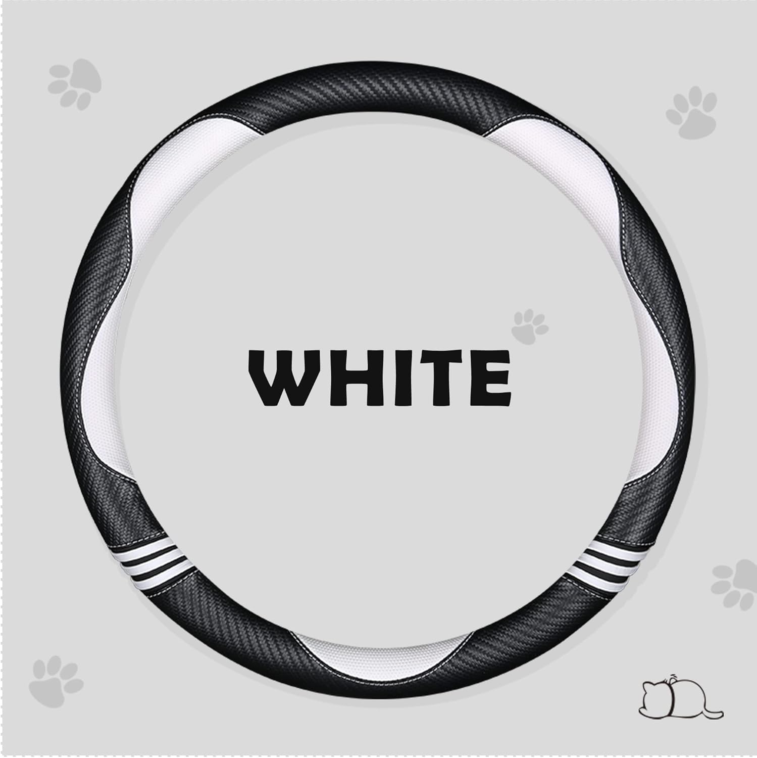 Car Steering Wheel Covers for Women Padded Carbon Fiber PU Leather Cute Auto Interior Accessories for Vehicle, Sedan, Universal, Anti Slip, White, Standard Size 14.5-15"(37-38cm)