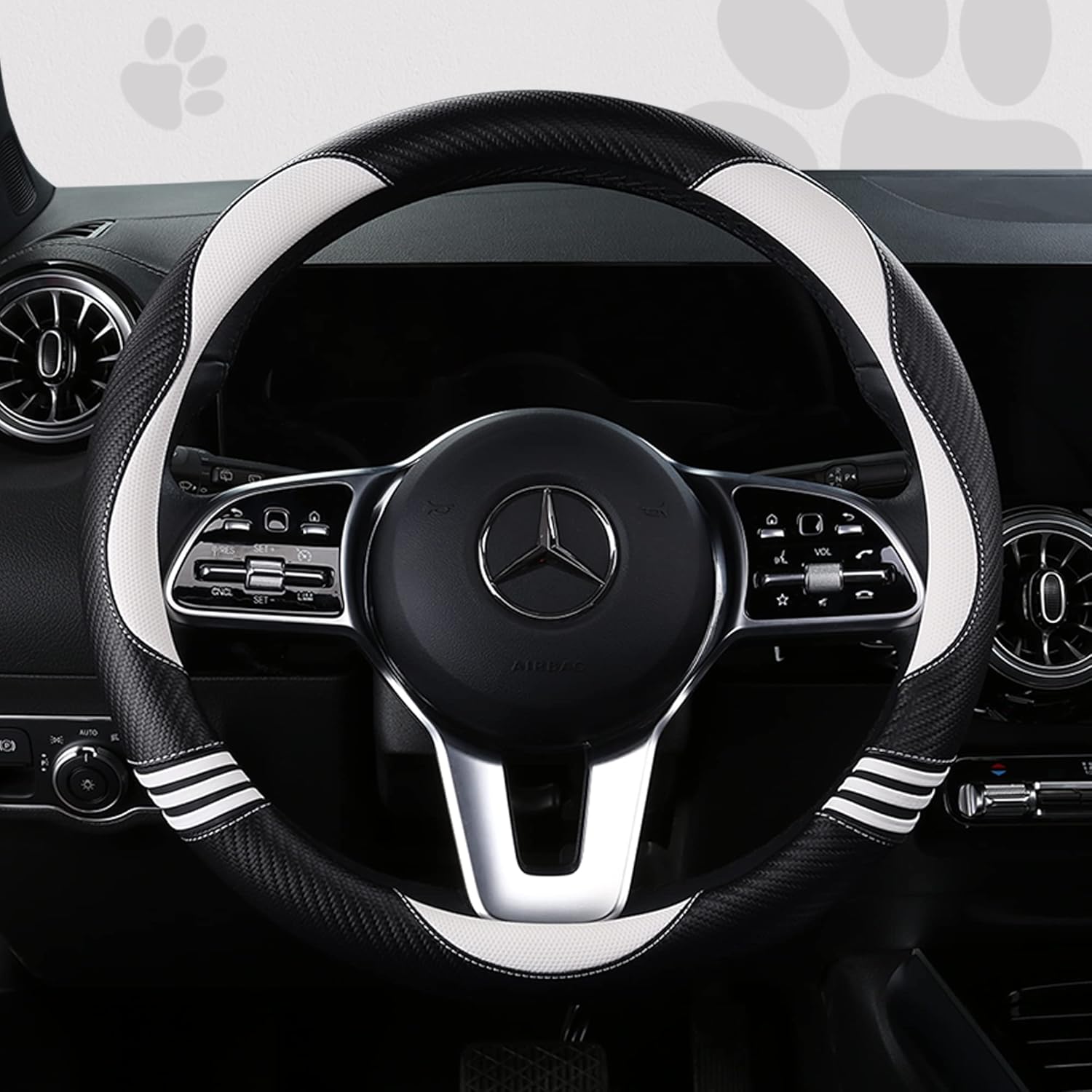 Car Steering Wheel Covers for Women Girl Padded Carbon Fiber PU Leather Cute Cartoon Auto Interior Accessories for Jeep, Truck, Universal, Anti Slip, White, Large Size 15.5-16"(39-41cm)
