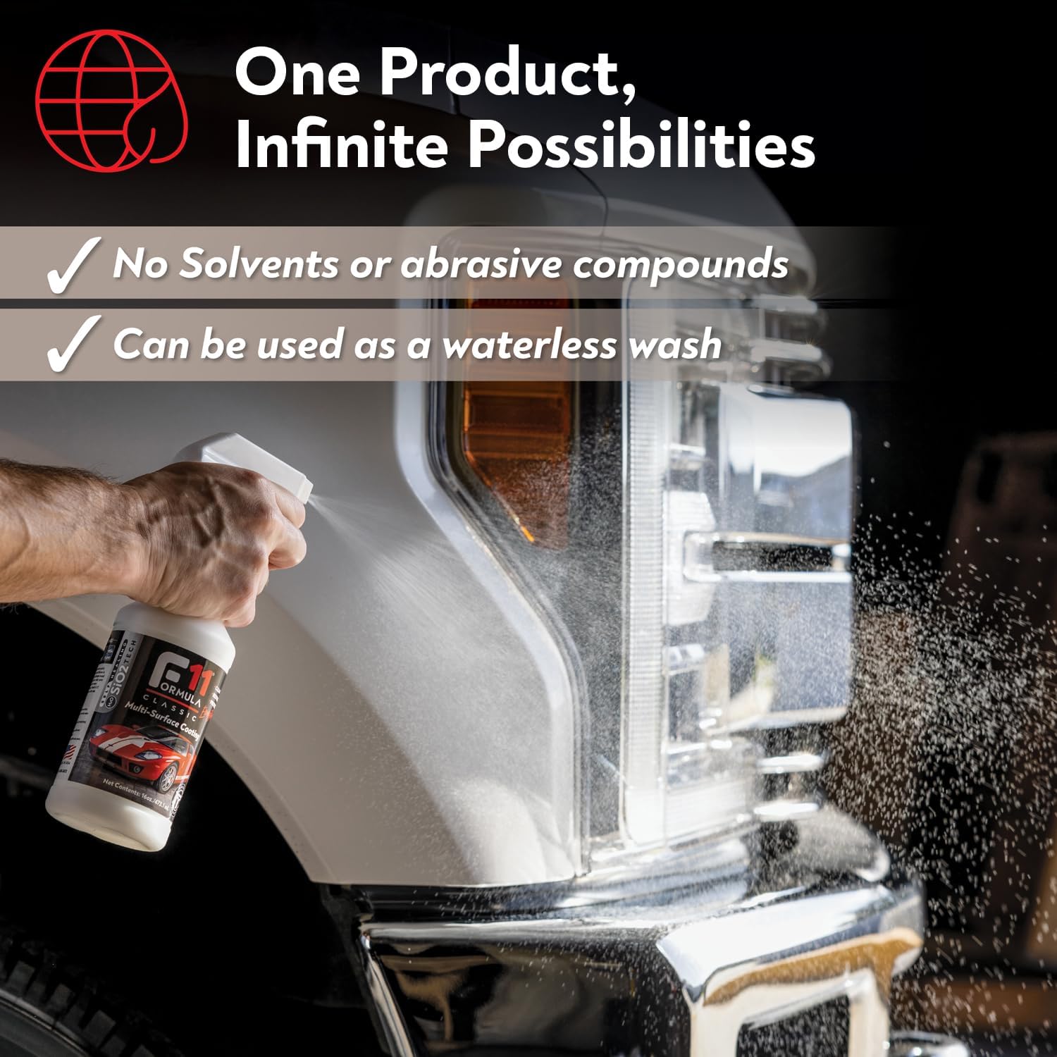 - Provides Lasting Shine and Protection: F11 polishes surfaces in a fraction of the time it takes to wax. Restores an array of surfaces to a glossy shine, maximizes depth of color, and conceals micro scratches