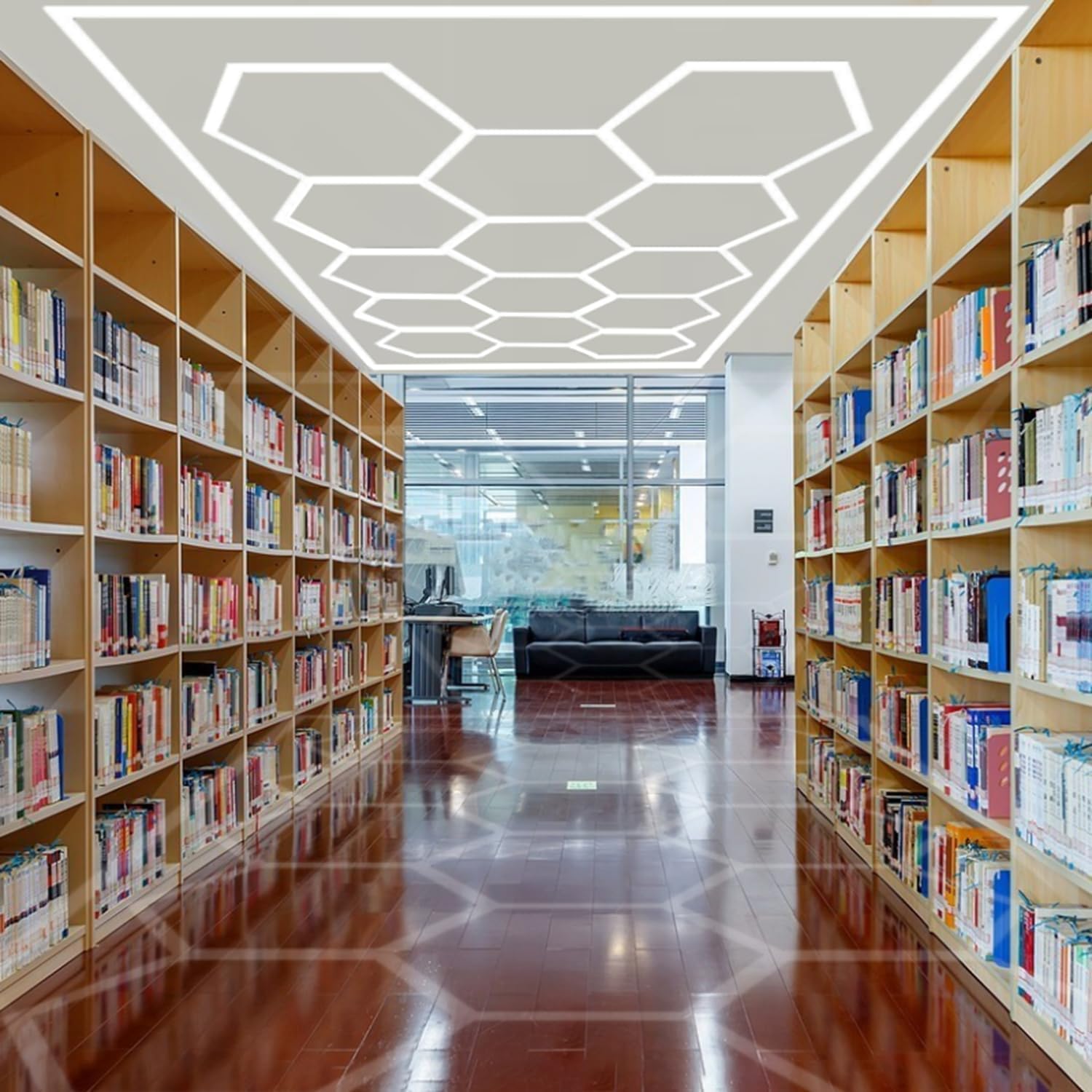 - The whole set of SENKOYU garage lights includes 84 lamps and accessories, 60 lamps (17.3 inches) form 15 hexagonal systems, 24 lamps (22.3 inches) form a rectangular frame, only 558w, can illuminate large areas very brightly , the perfect nest Illuminate the beauty your car