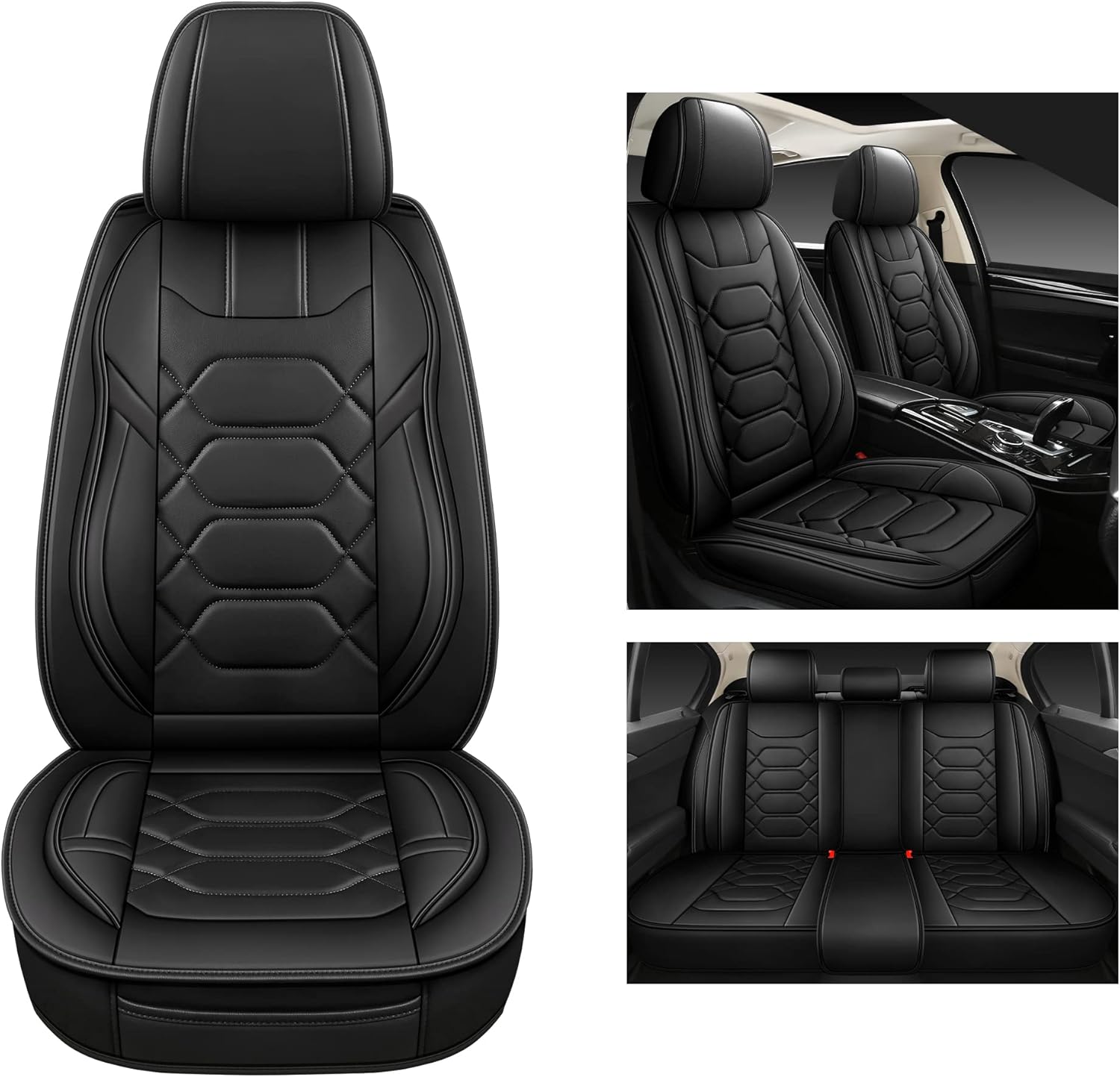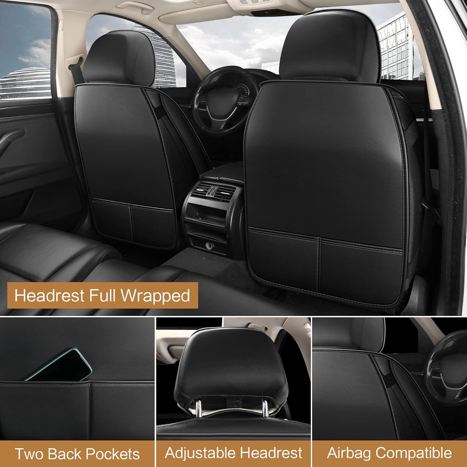 Pariitadin Leather Car Seat Covers Full Set, Waterproof Faux Leather Seat Covers for Cars, Non-Slip Car Interior Covers Universal Fit for Most Cars Sedans Trucks SUVs, Black