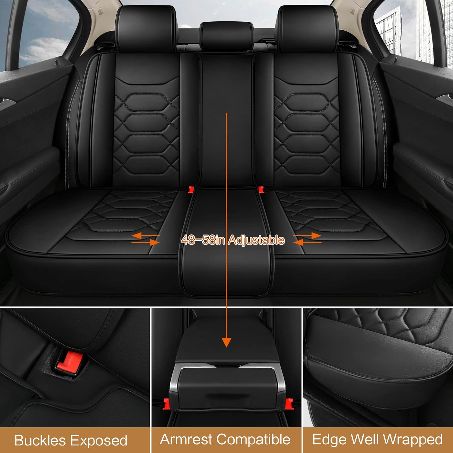 - Premium Material: Made of high-grade leatherette materials, Waterproof, Durable Wear-resistant and Easy to Clean. Protecting your car seats from damage, spill or stain in all directions. Equipped with thick, premium High-Density Foam to create top resilience for maximum comfort during your drive.