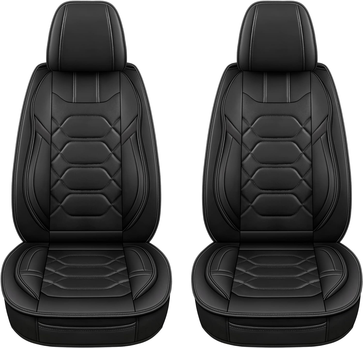 Pariitadin Leather Car Seat Covers Front Pair, Waterproof Faux Leather Seat Covers for Cars, Non-Slip Car Interior Covers Universal Fit for Most Cars Sedans Trucks SUVs, Black