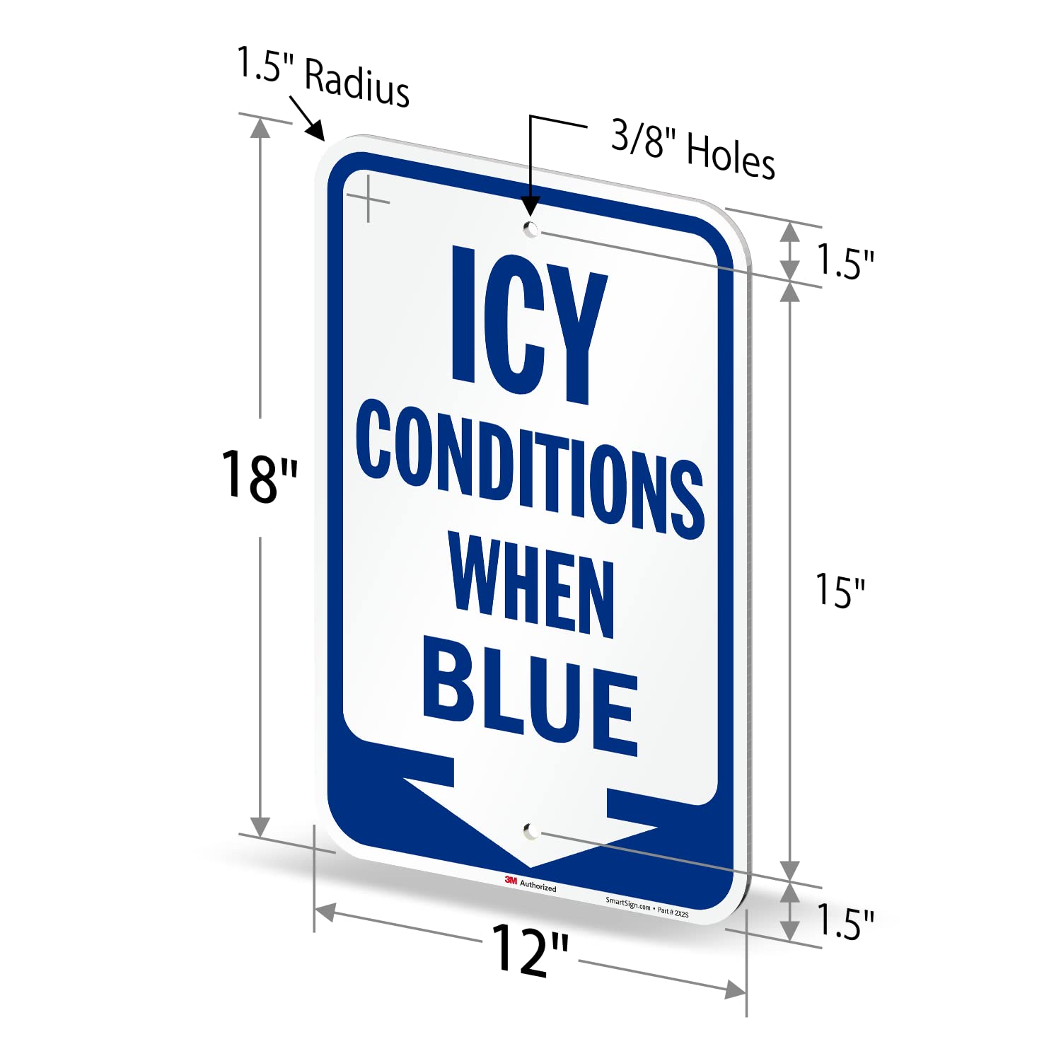 SmartSign Icy Conditions When Blue Sign with Down Arrow - 18 x 12 inch, 63 mil Aluminum, 3M Laminated Engineer Grade Reflective Material, Blue and White, Made in USA