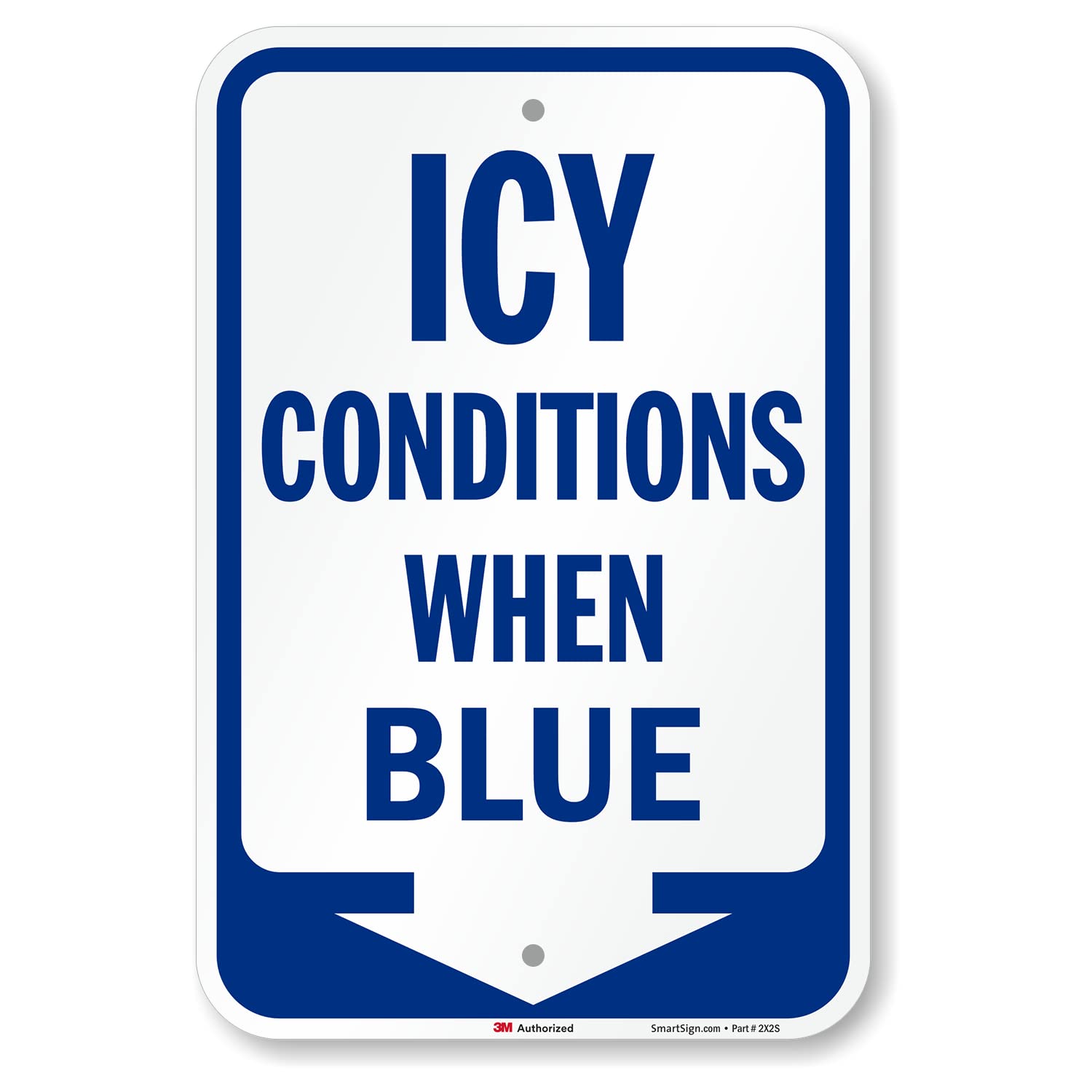 - DURABLE ALUMINUM: 'Icy When Blue Ice Alert' signs are made of 63 mil thick heavy-duty rustproof reflective aluminum that easily lasts 10 years outside and meets DOT road and traffic requirements.