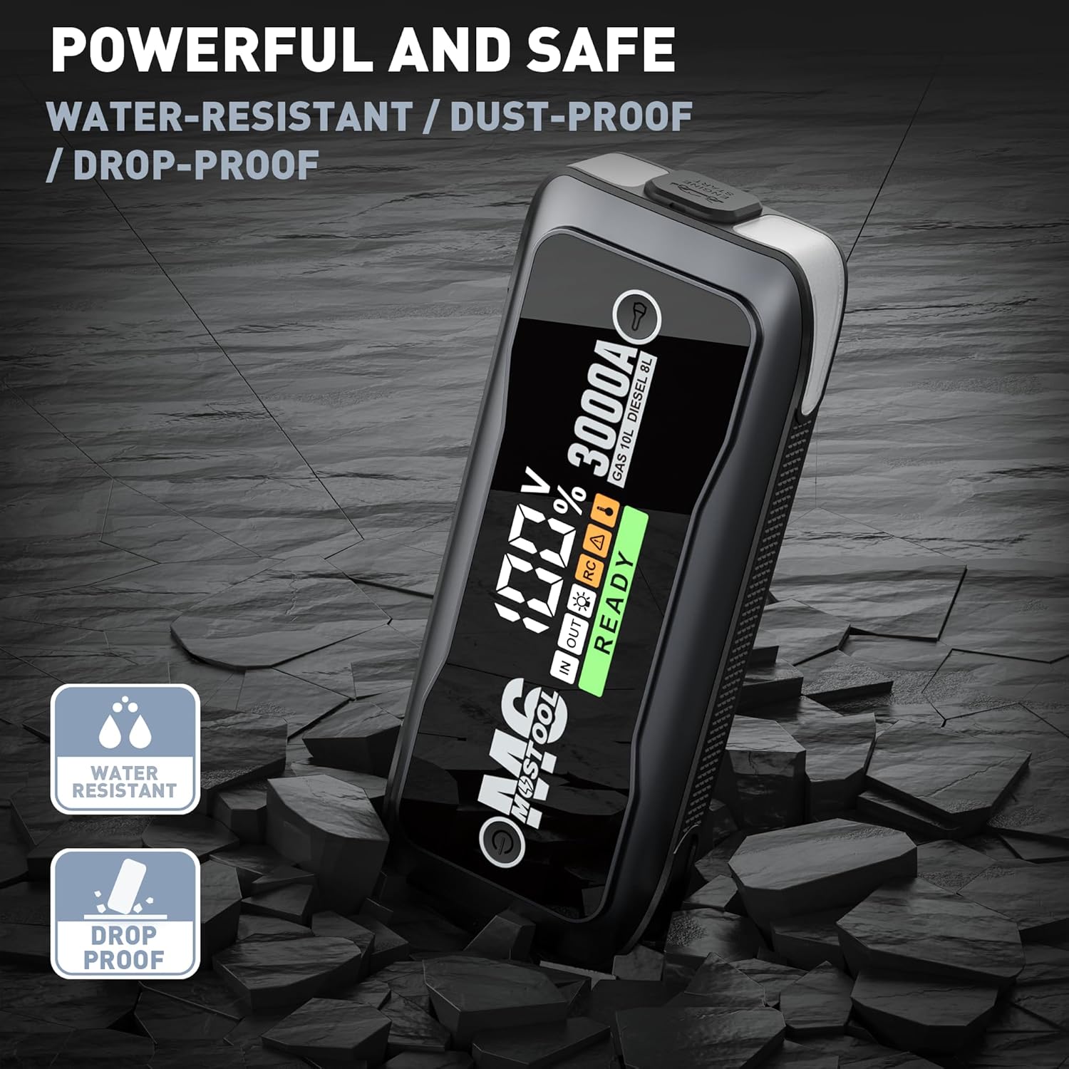 MOSTOOL M6 Car Jump Starter, 3000A Peak 12V Battery Jump Starter Power Pack with LED Display, Compact Portable Jumper Starter Jump Box for Car Battery, for All Gas Engines and Up to 8.0L Diesel